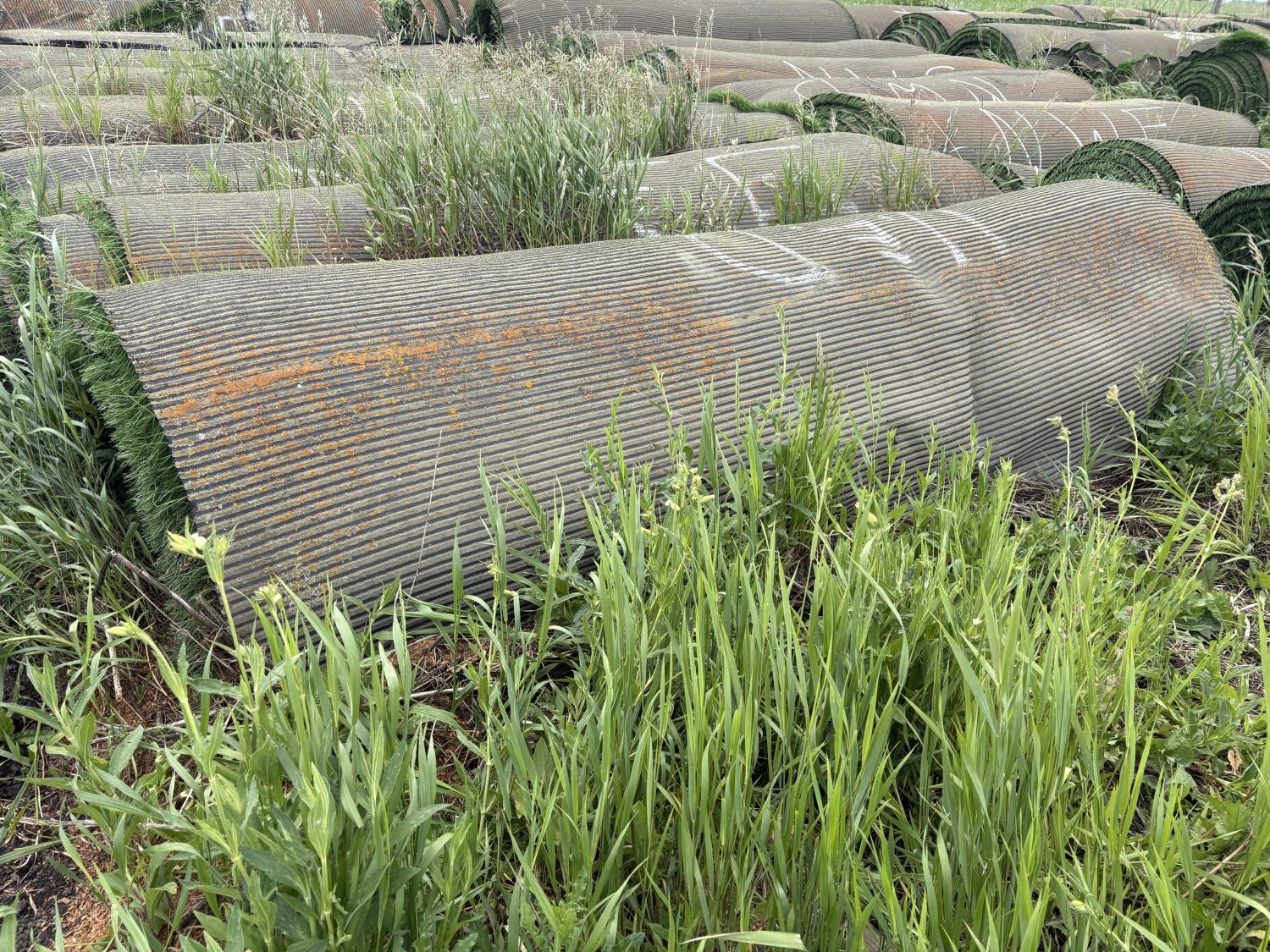 Field Turf product, used only 6 years, grass blade length is 2-9/16 inch high, size of roll is 135+/- inches X 40+/- ft long(approximately), Each roll will contain a depth of sand & rubber crumb infill mixture & weigh from 3000-4000 lb (approximately), depending on the depth of the infill. The turf backing contains drainage holes to allow for water seepage. Turf is a high quality product that meets many sports fields standards and applications. Buyer MUST take the next roll in line, NO PICKING ALLOWED