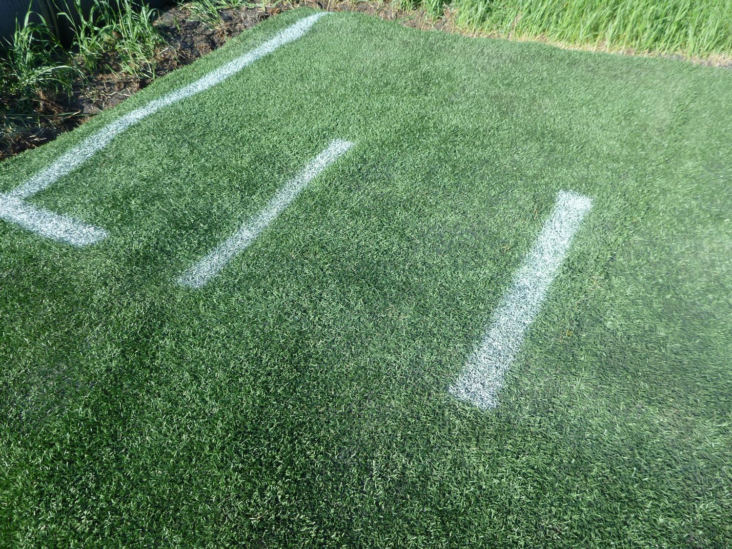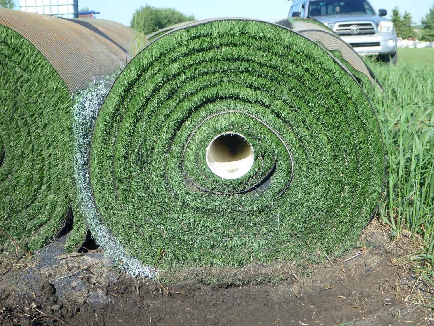 Field Turf product, used only 6 years, grass blade length is 2-9/16 inch high, size of roll is 135+/- inches X 40+/- ft long(approximately), Each roll will contain a depth of sand & rubber crumb infill mixture & weigh from 3000-4000 lb (approximately), depending on the depth of the infill. The turf backing contains drainage holes to allow for water seepage. Turf is a high quality product that meets many sports fields standards and applications. Buyer MUST take the next roll in line, NO PICKING ALLOWED