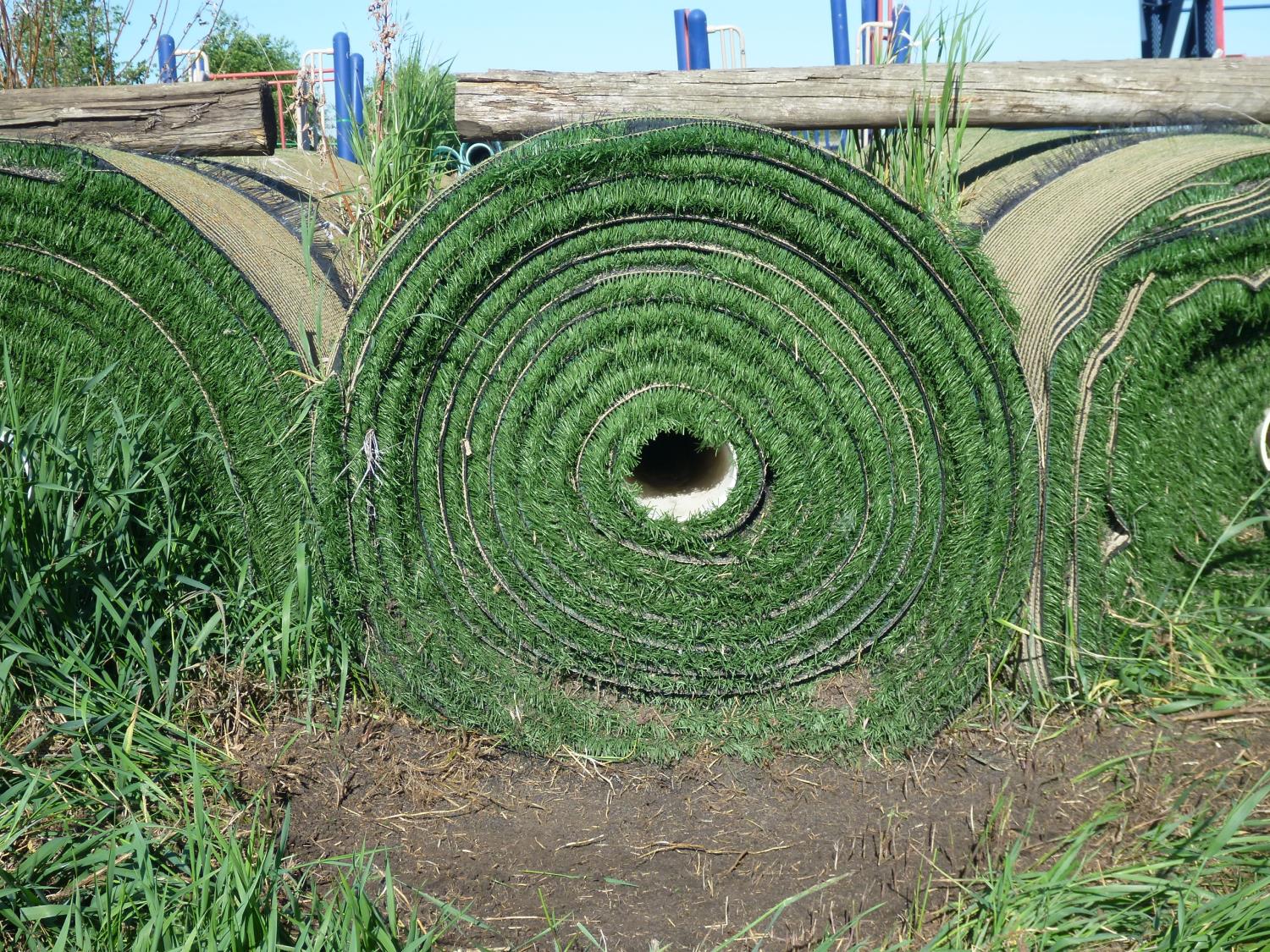 Field Turf product, used only 3 years, grass blade length is 2 inch high, size of roll is 115+/- inch wide X 60+/- Ft long (approximately), turf was removed from the City of Edmonton for New World Cup turf. Each roll will contain a depth of sand & rubber crumb infill mixture & weigh from 3000-4000 lb (approximately), depending on the depth of the infill. The turf backing contains drainage holes to allow for water seepage. Turf is a high quality product that meets many sports field standards and applications. Buyer MUST take the next roll in line, NO PICKING ALLOWED.