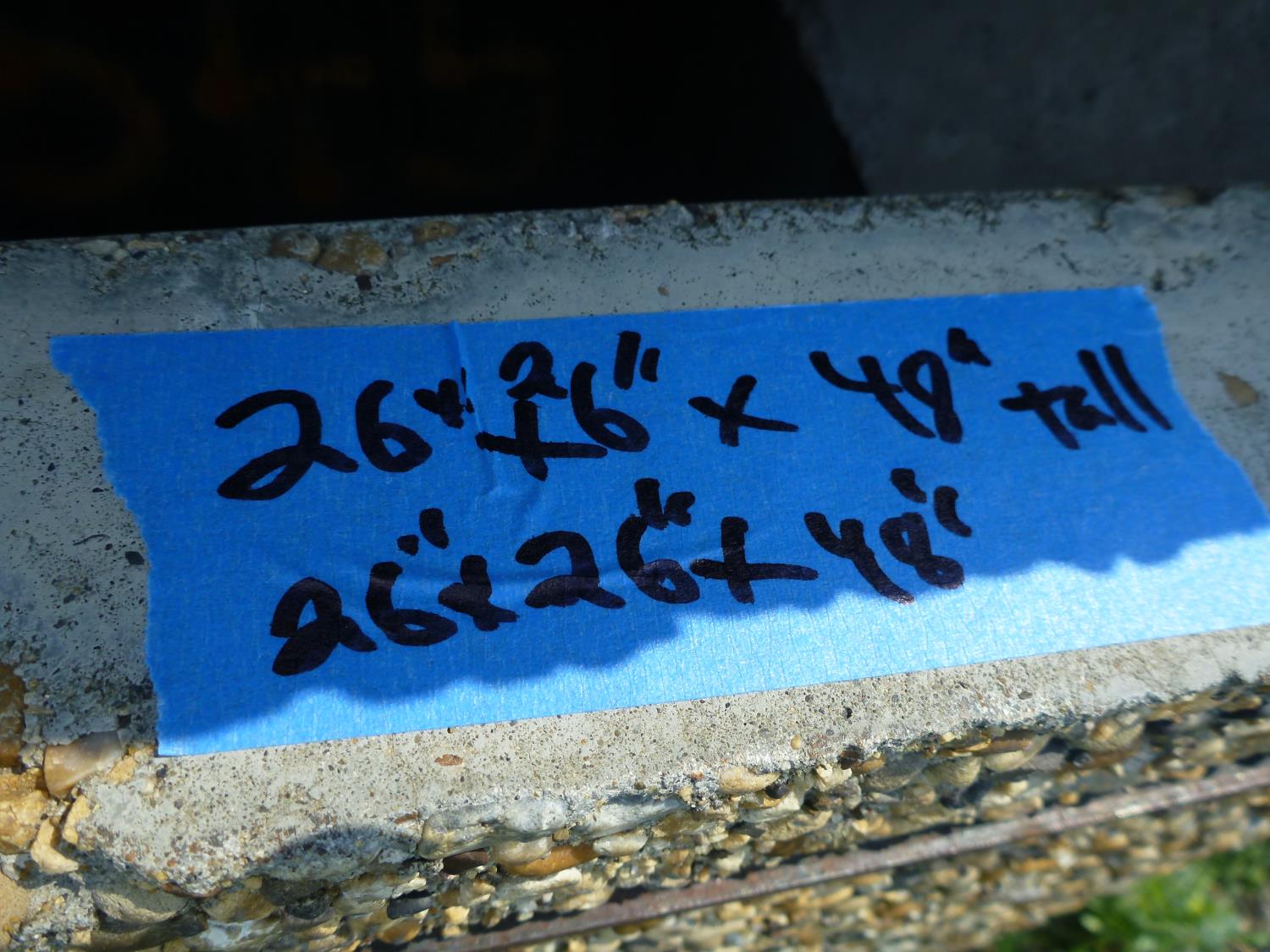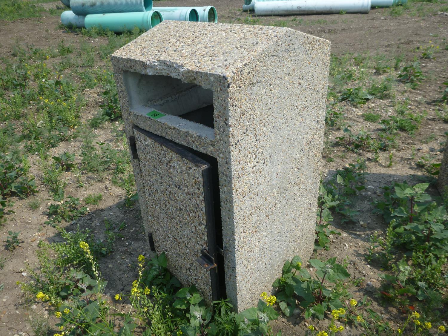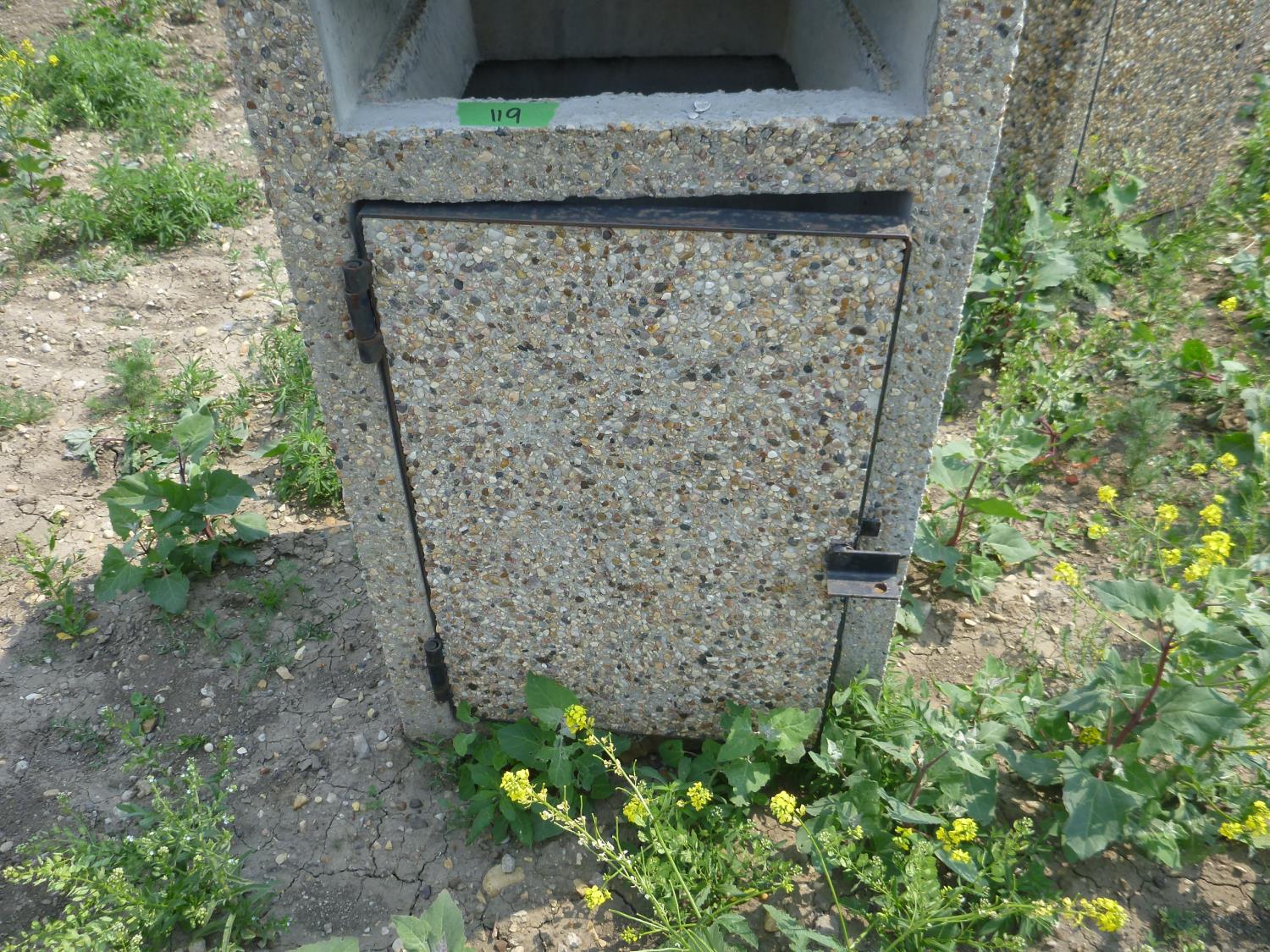 24 inch x 26 inch x 48 inch tall, complete with door, made from pre cast concrete with exposed aggregate