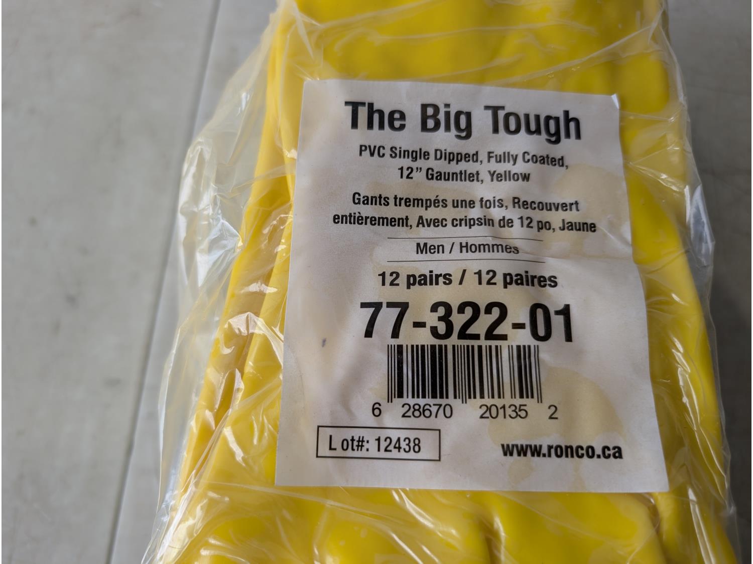 1411 (12) Pairs of the Big Tough PVC 12 Inch Gauntlet Gloves (Unused)