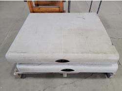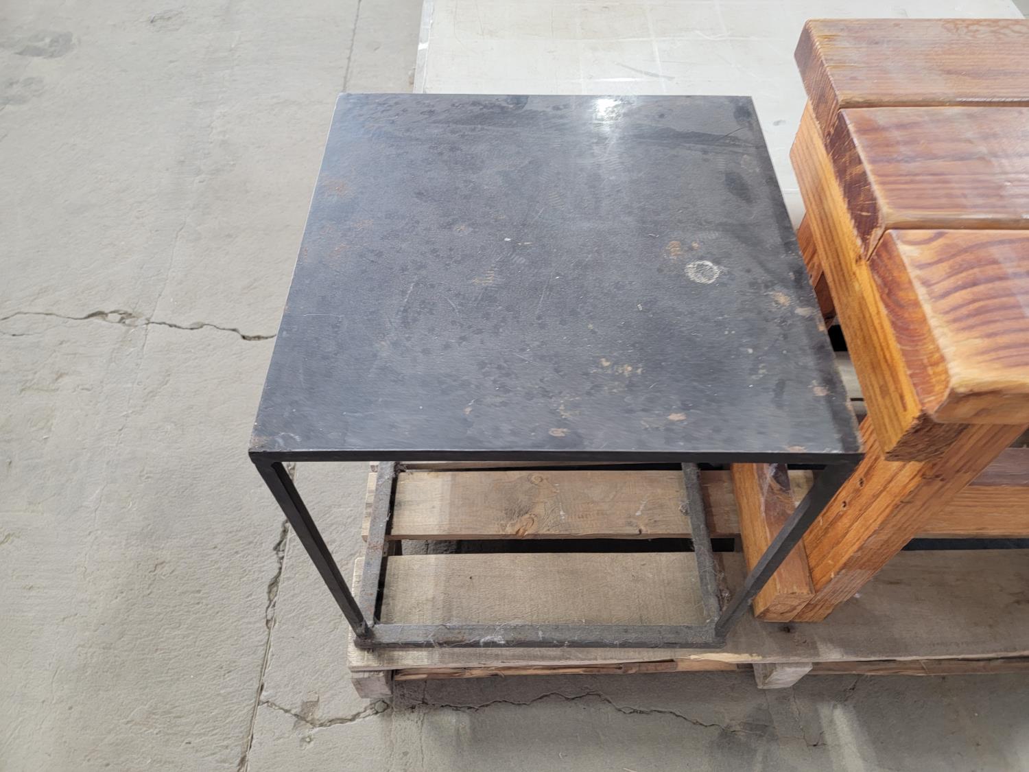 Wooden table 23 inch w x 16 inch d x 19-1/2 inch h, metal table 15-3/4 inch x 15-3/4 inch x 16-1/2 inch h