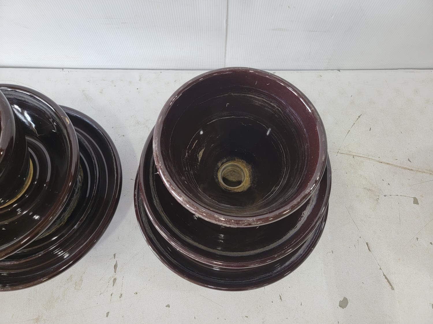 1086 (2) Vintage Large 3 Tier Ceramic Electric Insulators