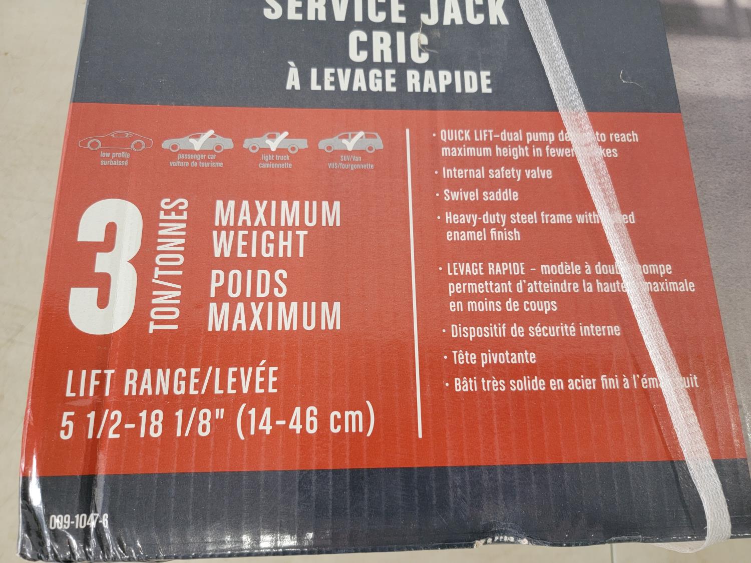 1467 Motomaster 3 Ton Quick Lift Floor Jack (Unused)