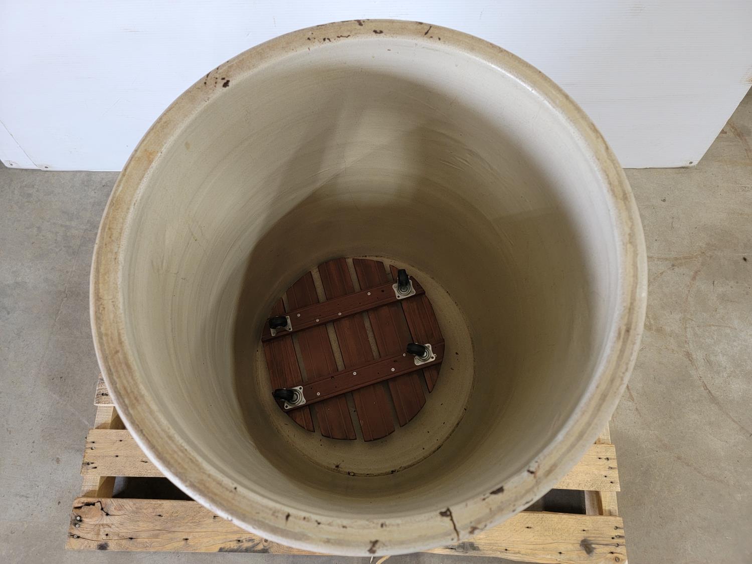 1261 Vintage Medalta 30 Gallon Crock with Dolly