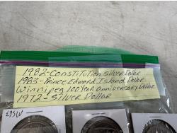 1982 Constitution silver dollar, 1983 Prince Edward Island dollar, Winnipeg 100 year anniversary dollar, 1972 silver dollar