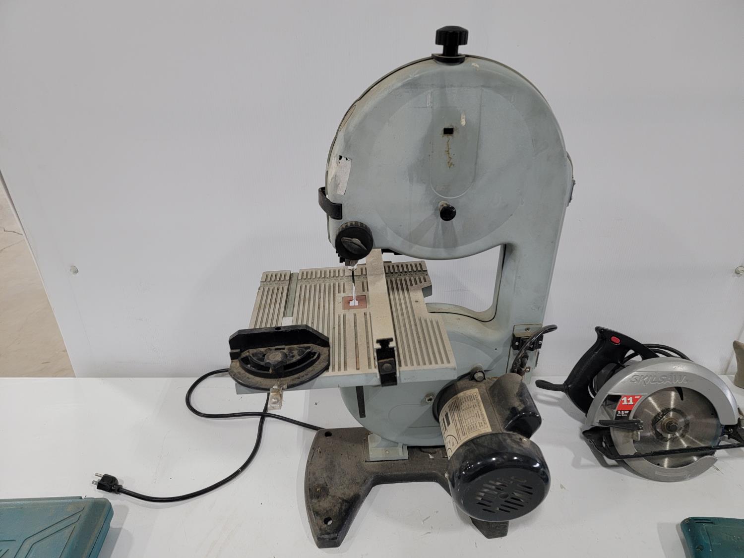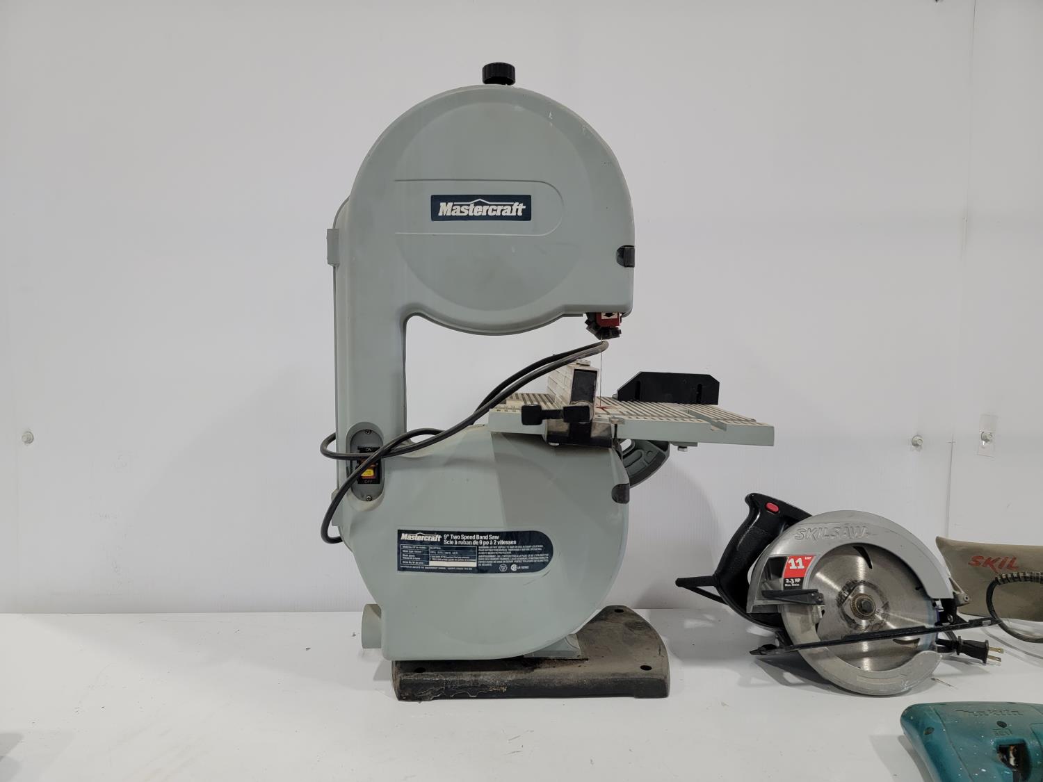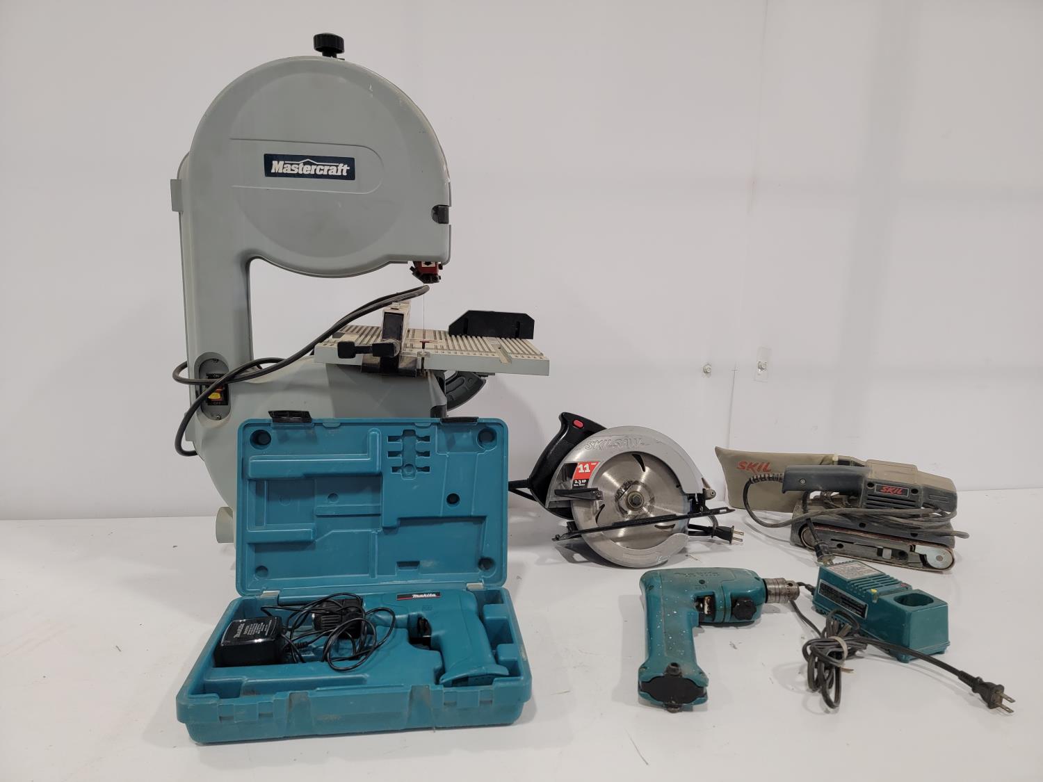 1065 Mastercraft 9 Inch Band Saw, (2) Makita Drills, 7-1/4 Inch Circular Saw and Skil Belt Sander