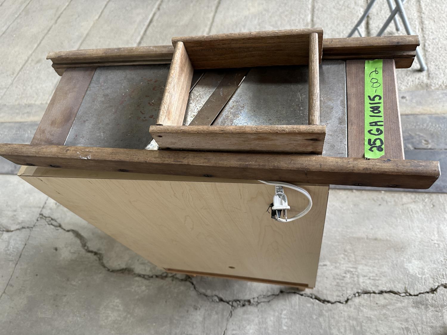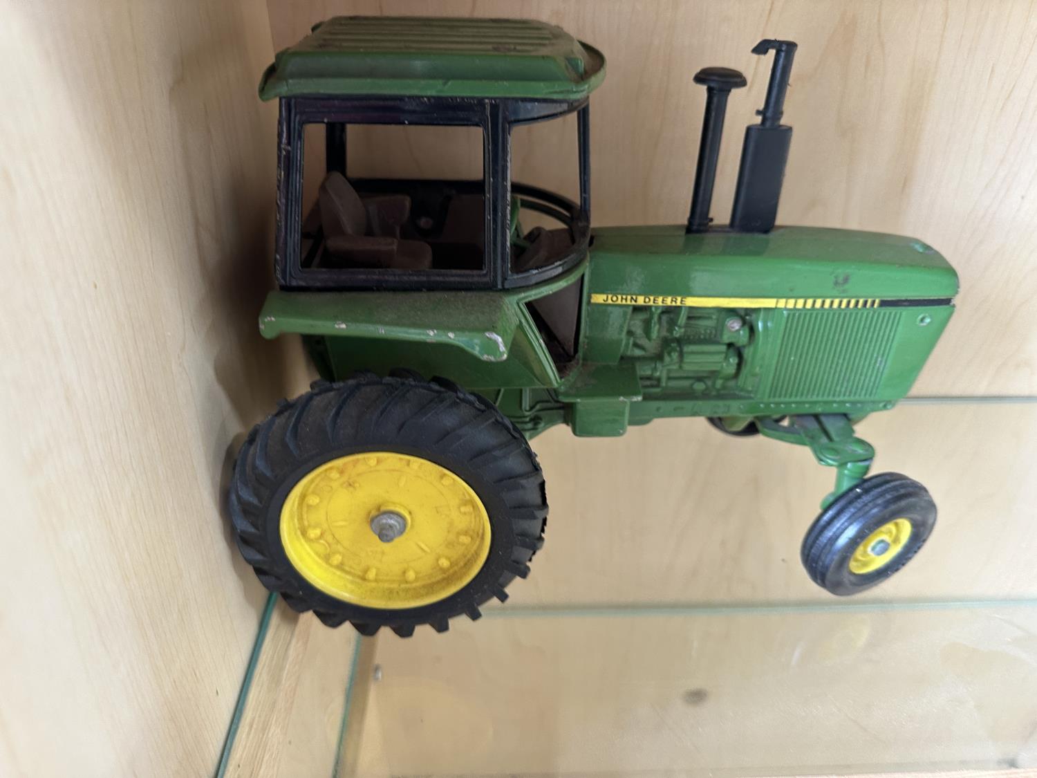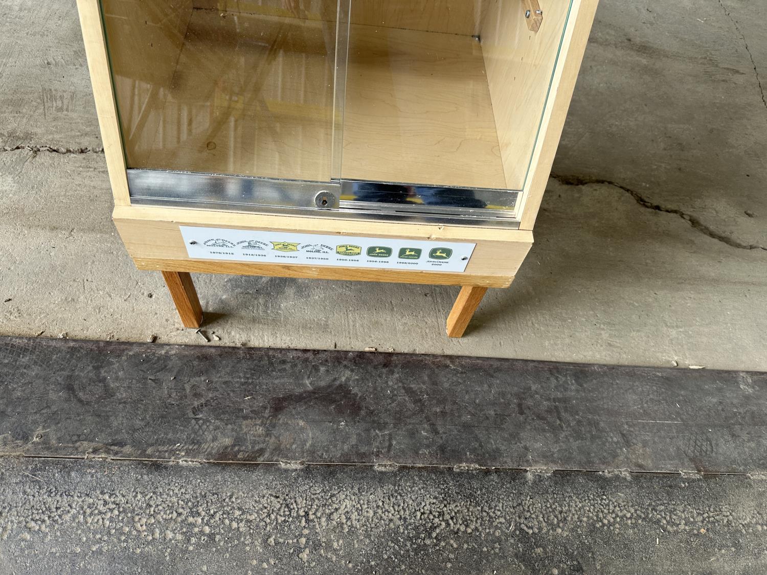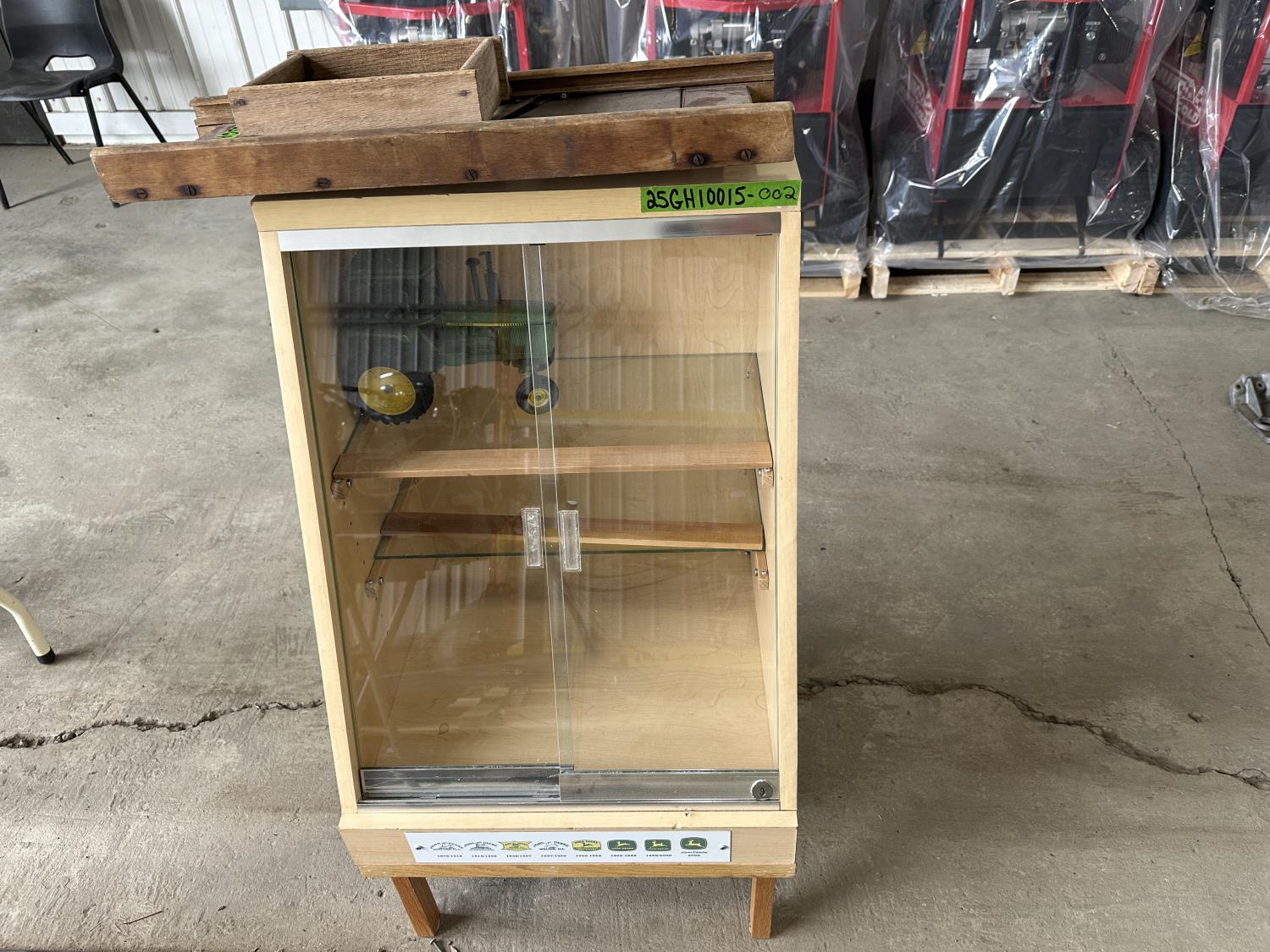 1198 Display Case with John Deere Toy Tractor and Antique Cabbage Cutter