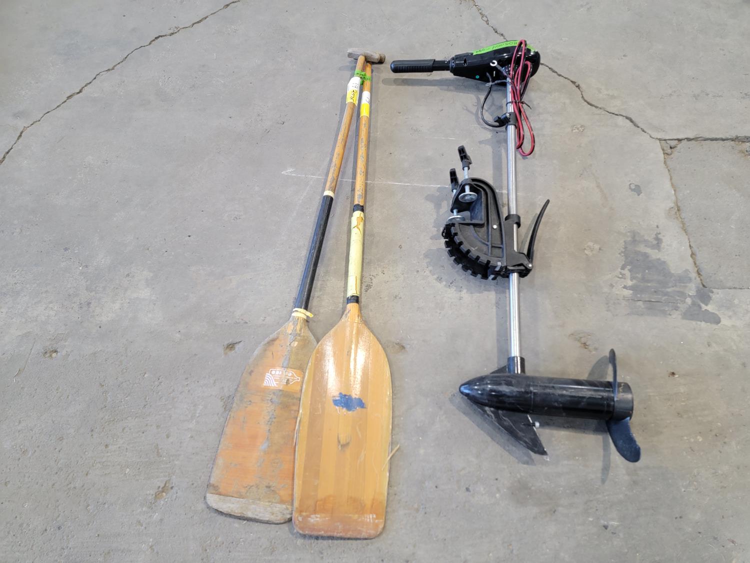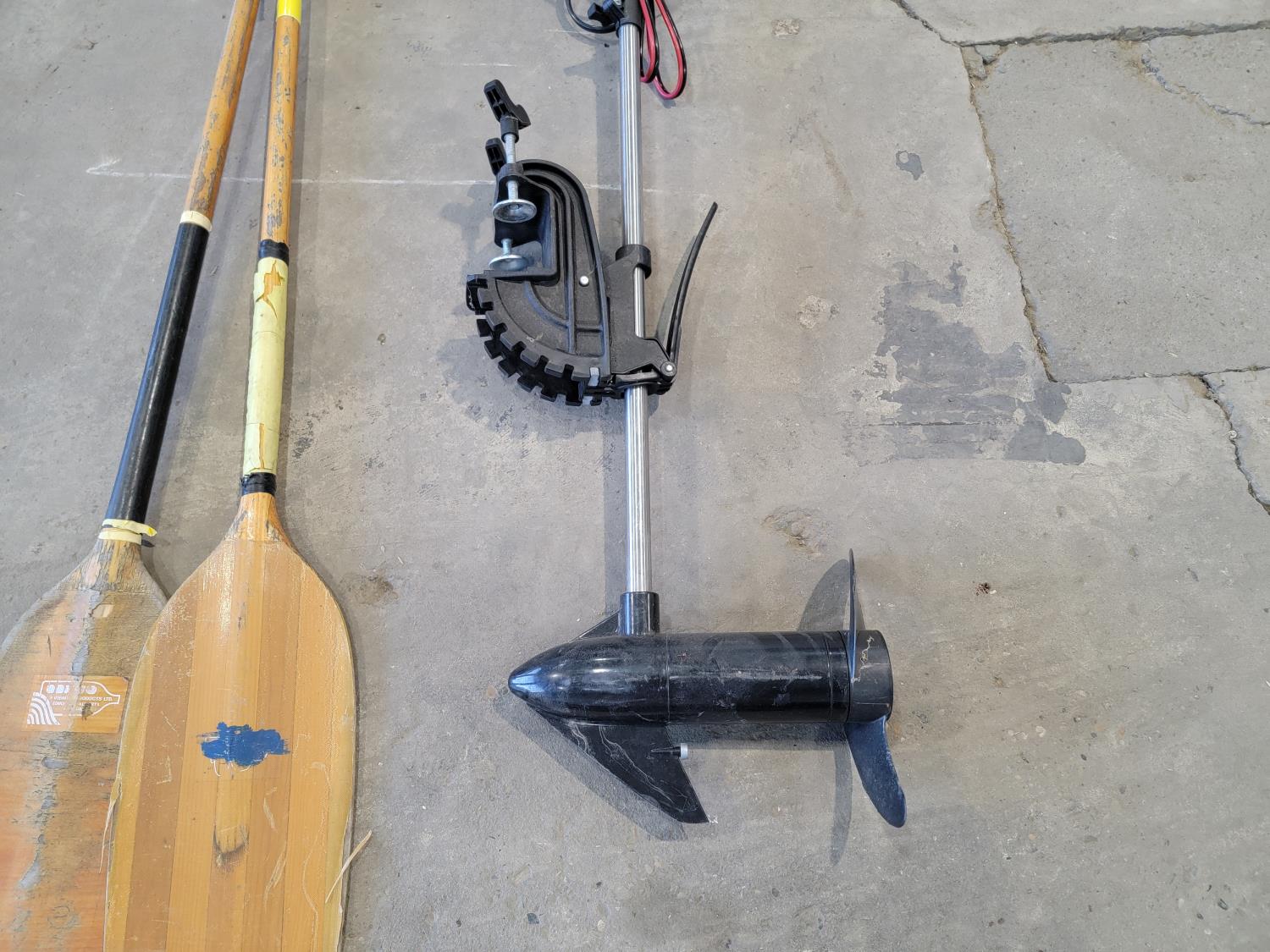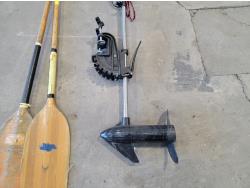 1295 Duramaxx Drifter II 12V Boat Motor and (2) Wooden Paddles