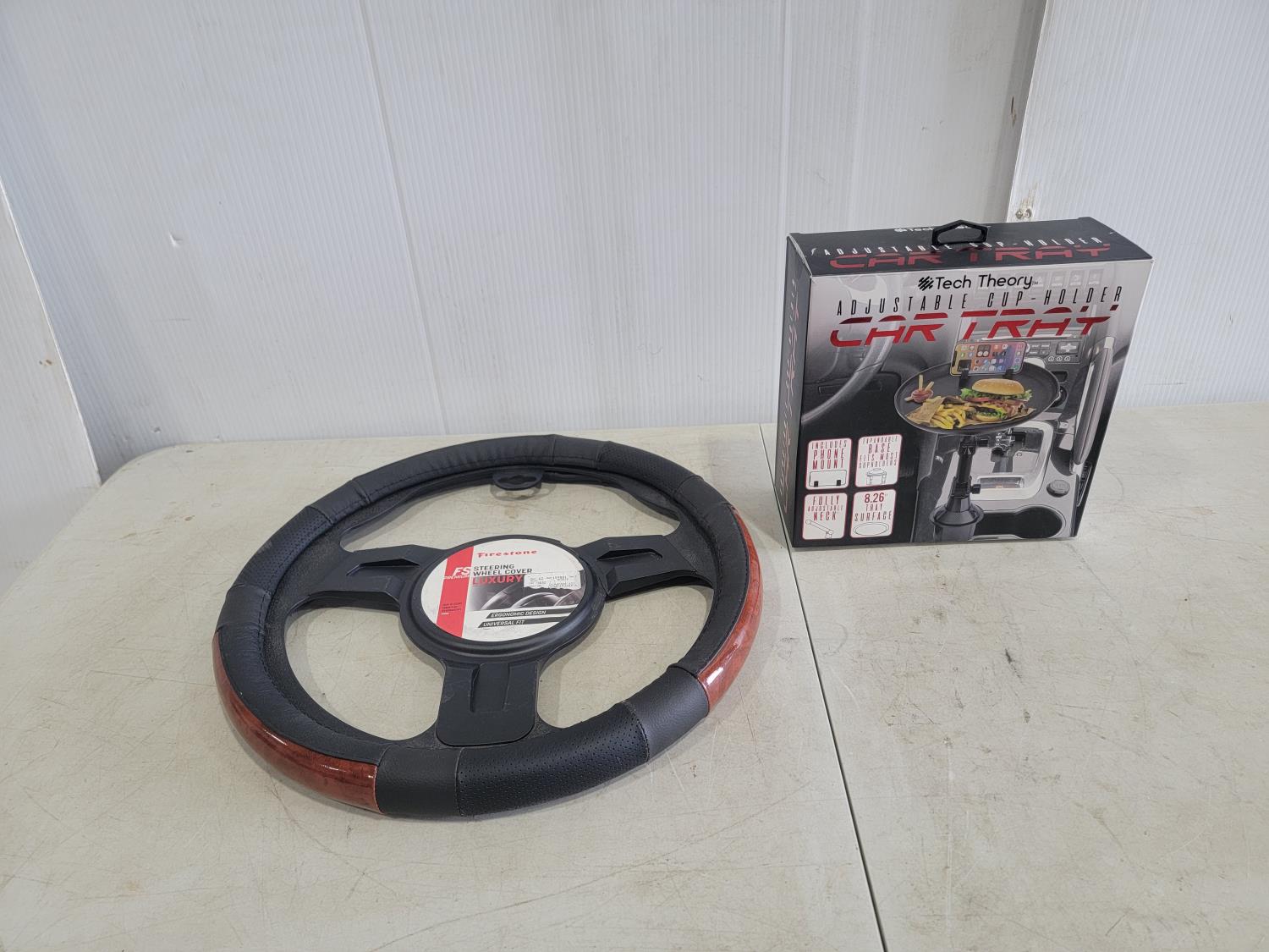 1138 Firestone Steering Wheel Cover and Adjustable Cup Holder/Car Tray