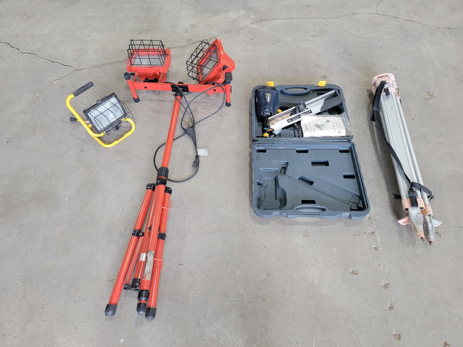 1278 Mastercraft Pneumatic Nailer, Tripod and (2) Work Lights