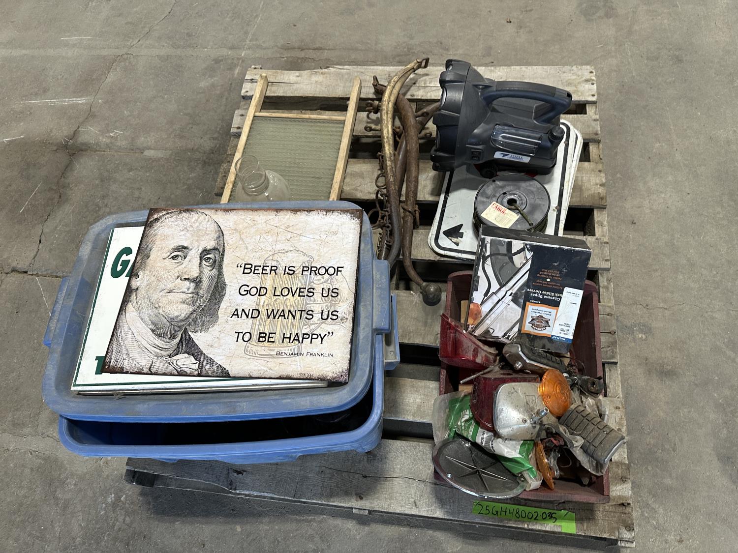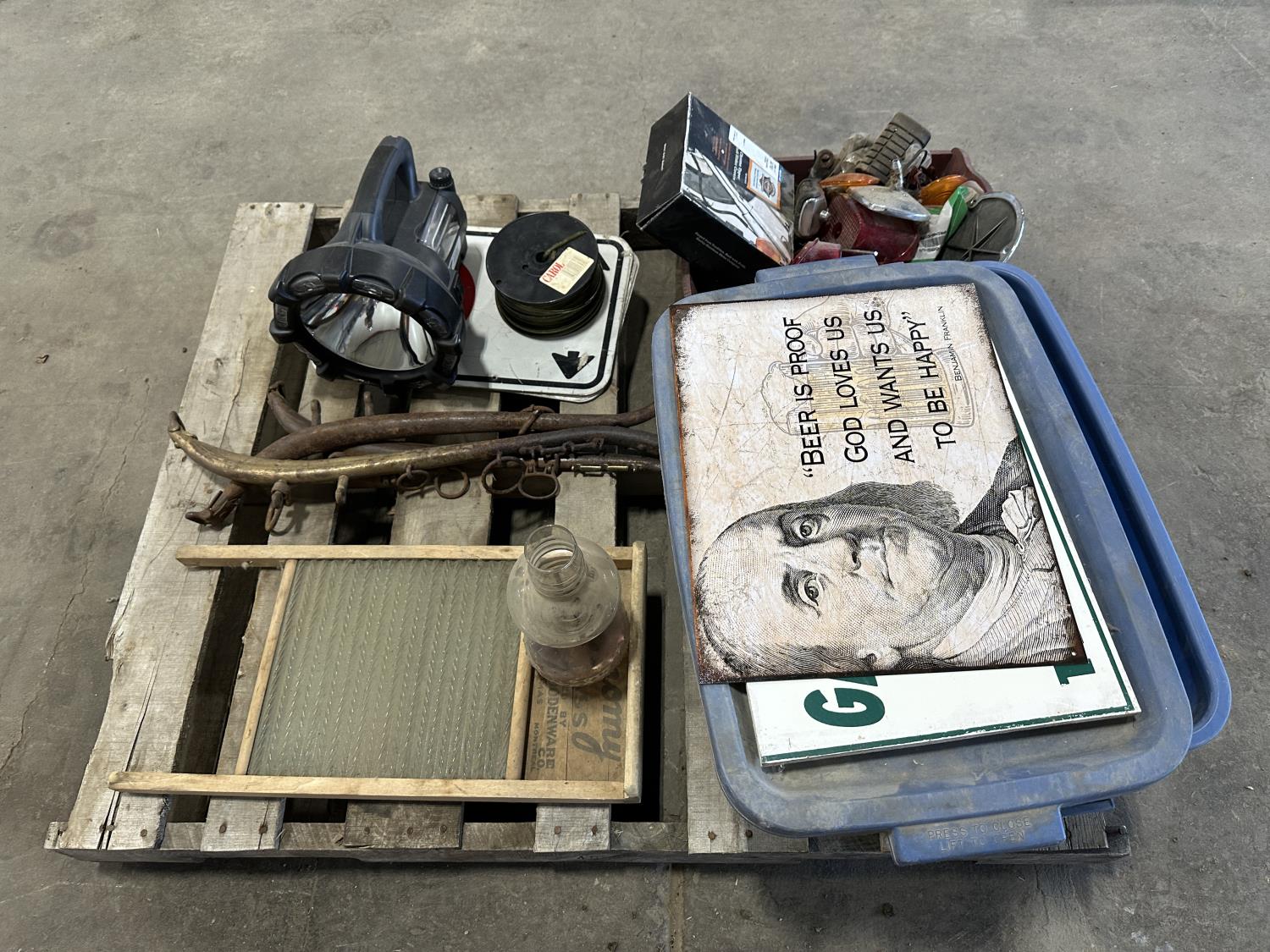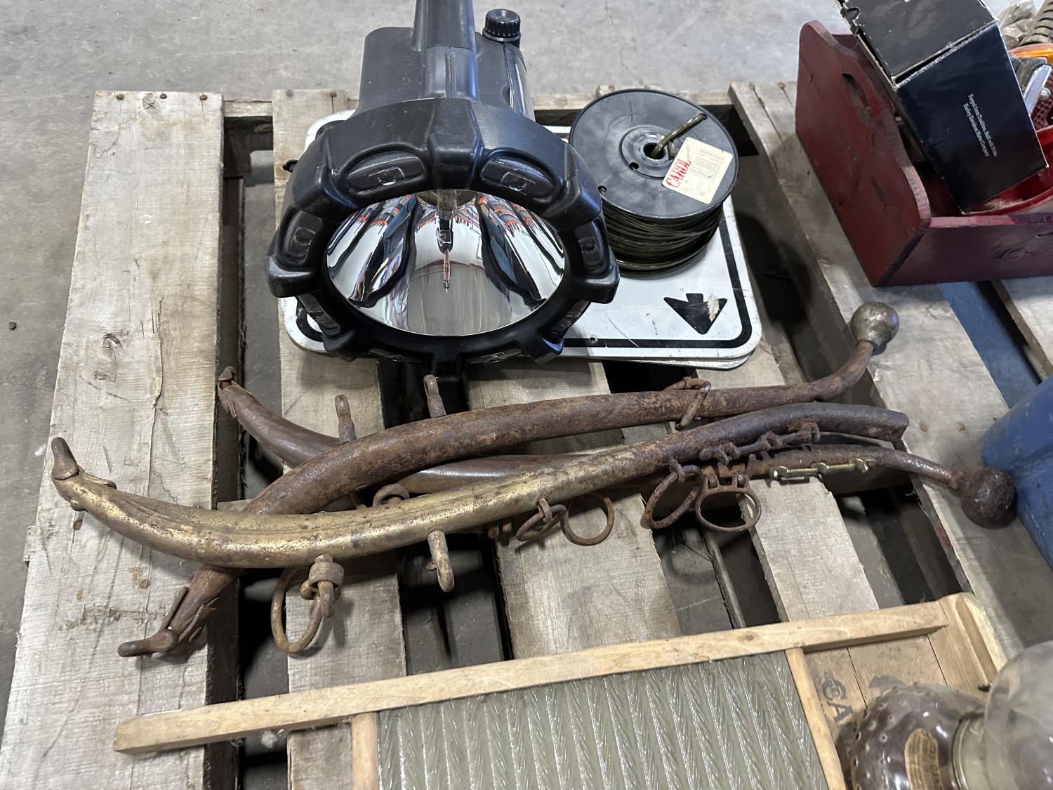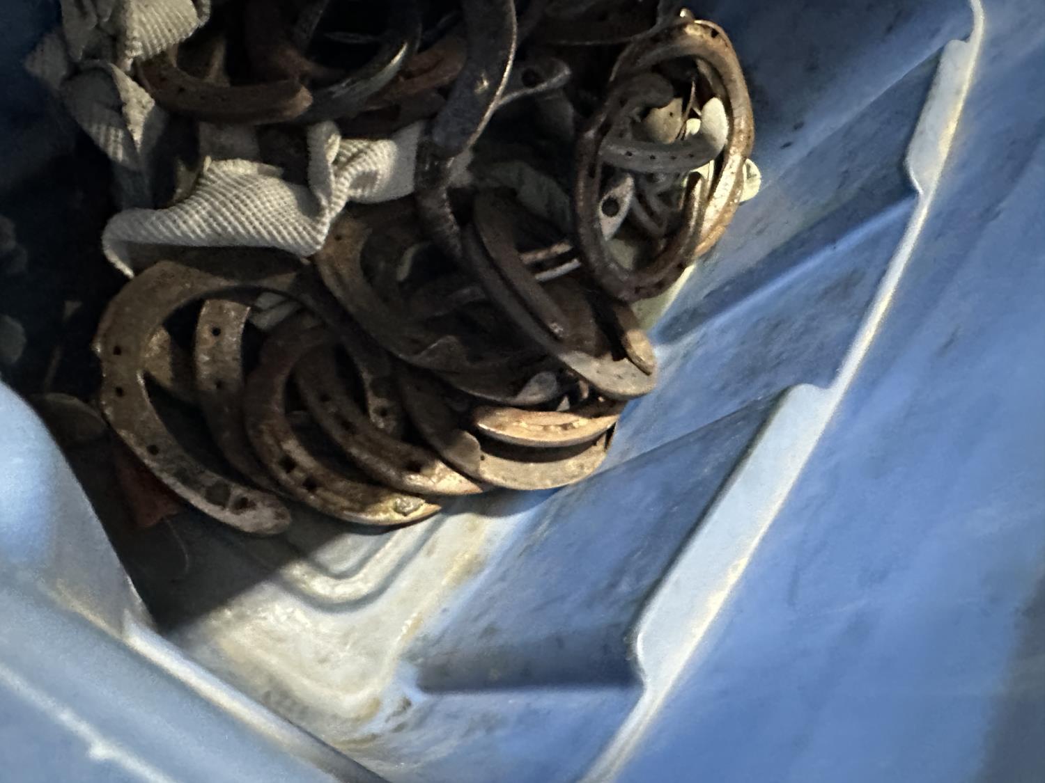 1307 Qty of Antique Items, Harley Parts and Horse Shoes