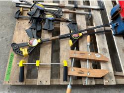 1193 Qty of Assorted Carpentry Clamps and Wisconsin Air Cooled Engine