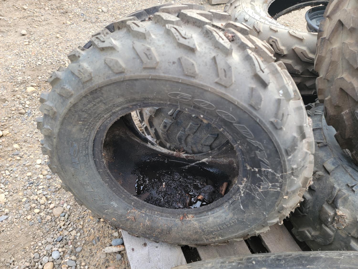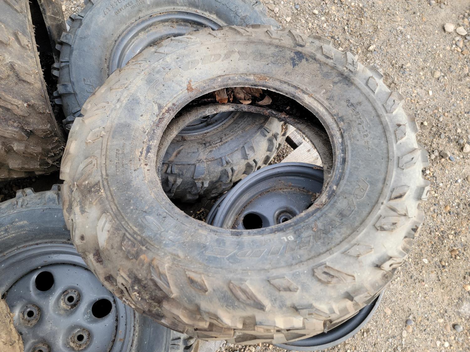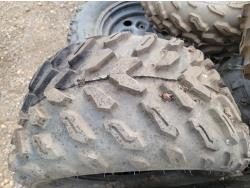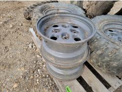 (4) 25x10-12 tires with (2) on rims, (2) 12 inch ATV rims, (2) 25x8-12 ATV front tires