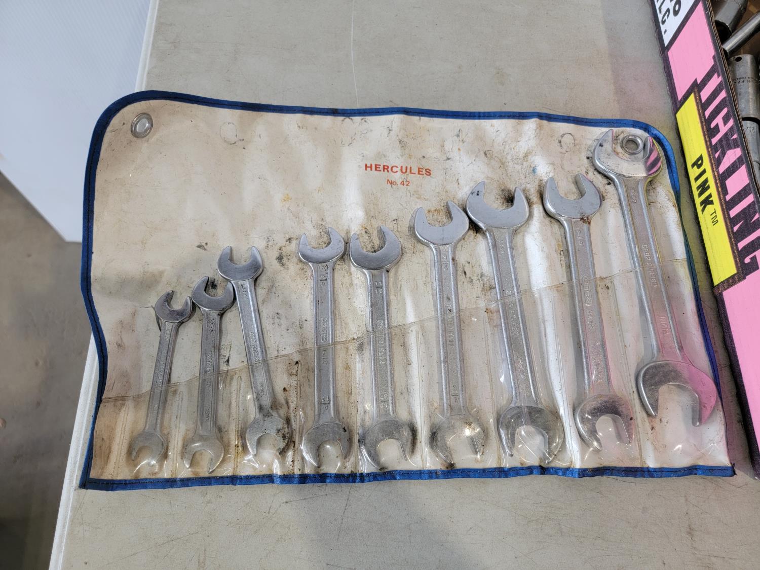 Sockets 3/8 inch and 1/2 inch drive, wrenches 3/8 inch to 1-1/4 inch