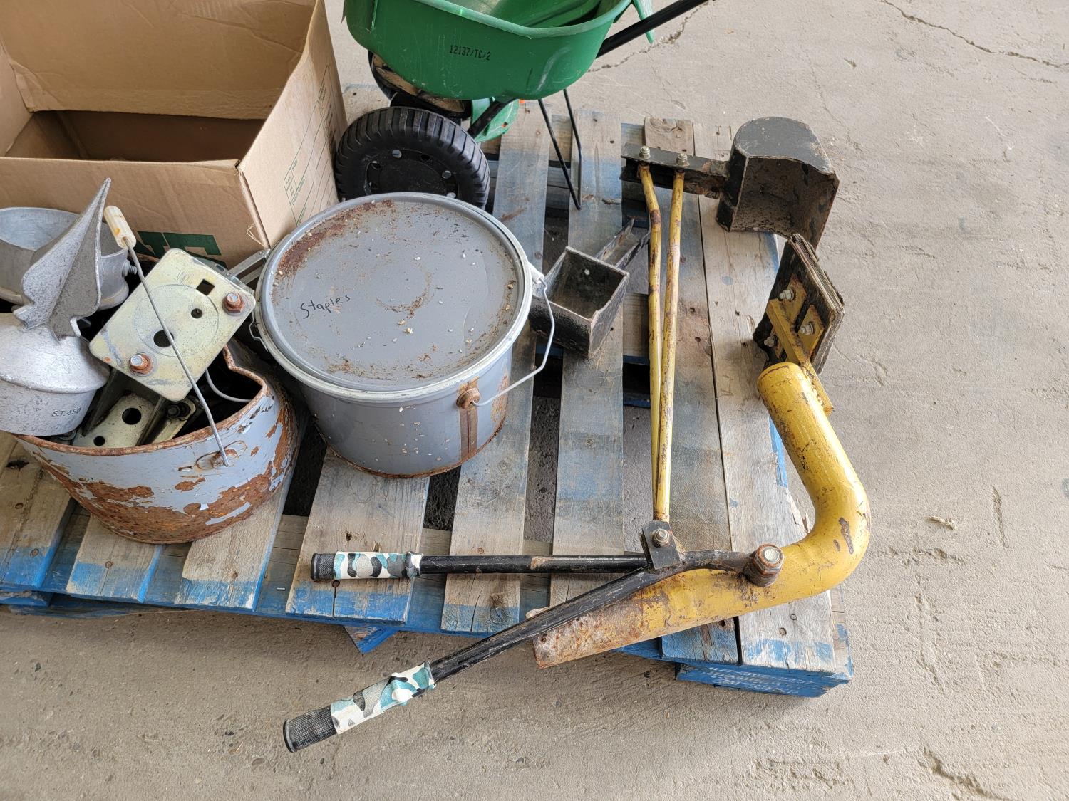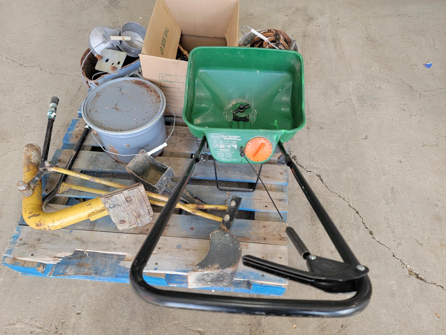 1174 Qty of Fencing Supplies, Broadcast Spreader and Children's Digger