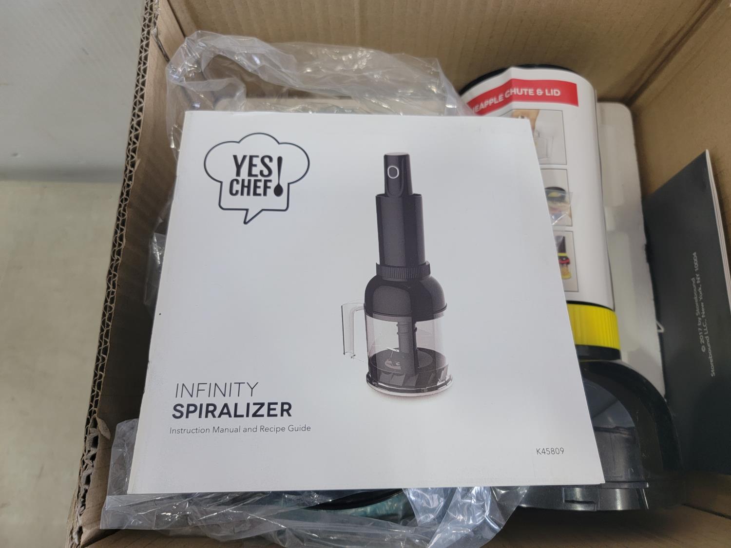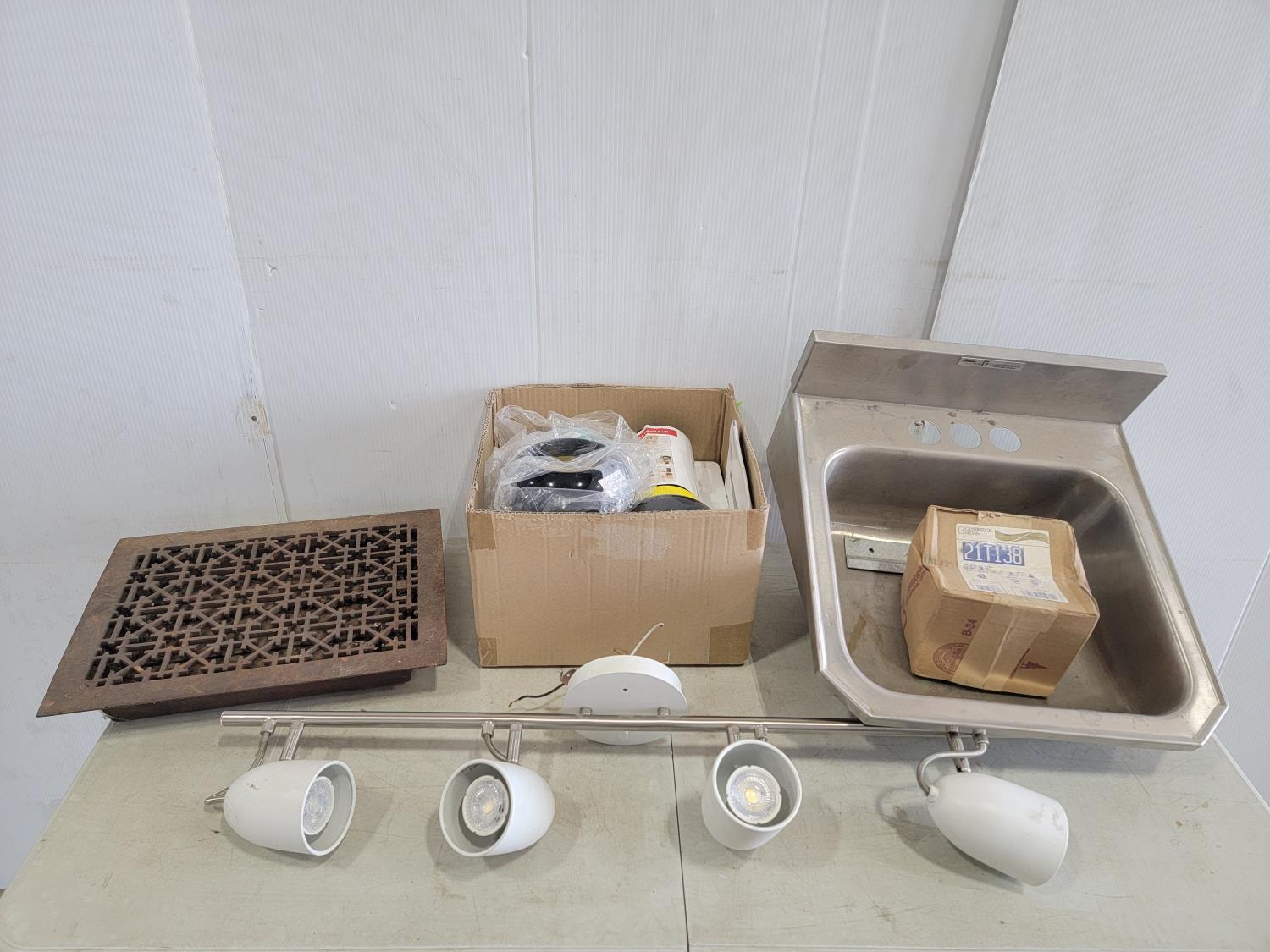 16 inch x 12 inch metal vent cover, 32 inch track light, 16-3/4 inch x 17 inch wall sink, Yes Chef Infinity Spiralizer (unused)
