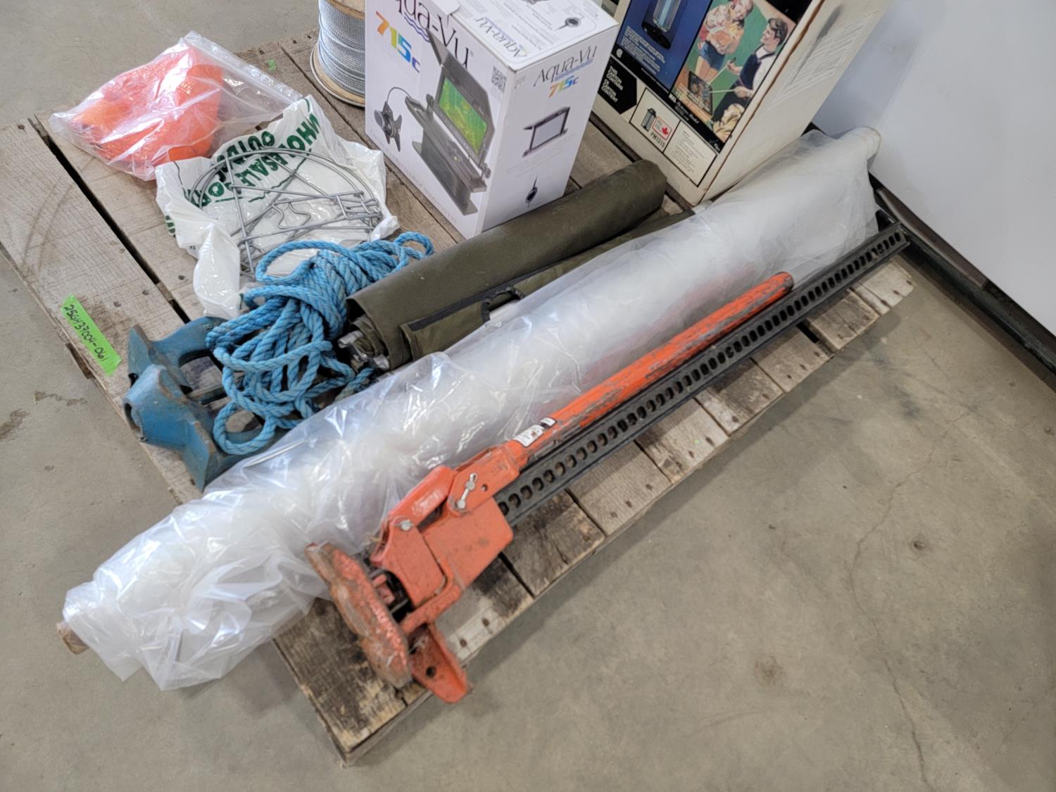 Aqua-Vu fish camera, electronic bug killer, (2) garden sprayers, Jackall, 15 lb anchor, cable wire