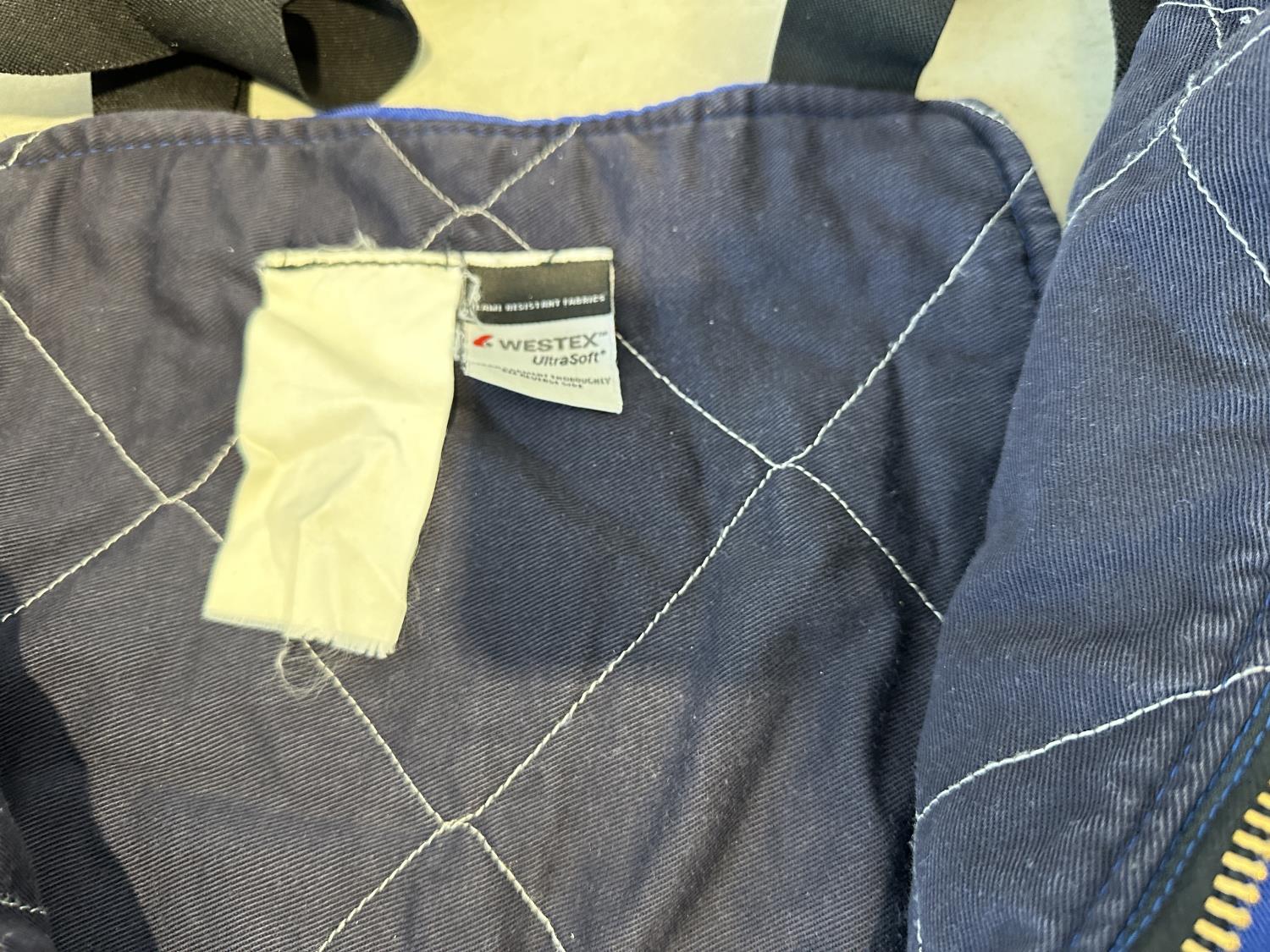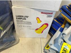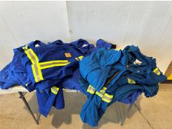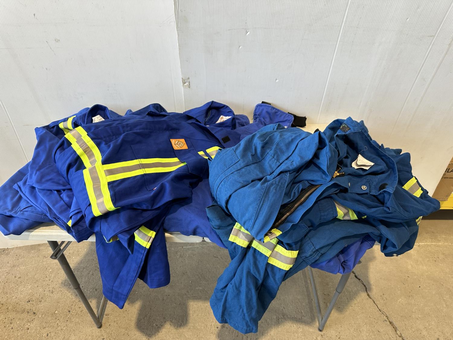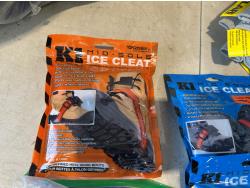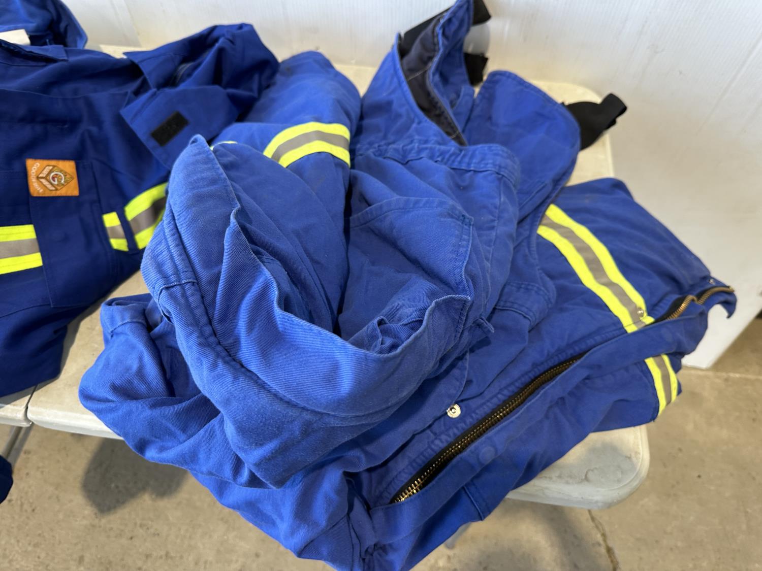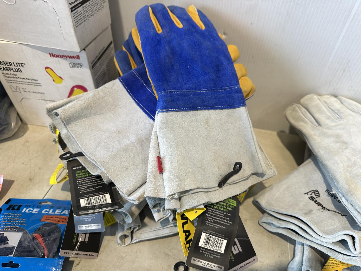 Ice cleats, ear plugs, (8) pairs of BDG leather welding gloves, (3) pairs size large Superior Kevlar gloves, Condor size Large work gloves, (6±) pairs of coveralls, insulated bibs