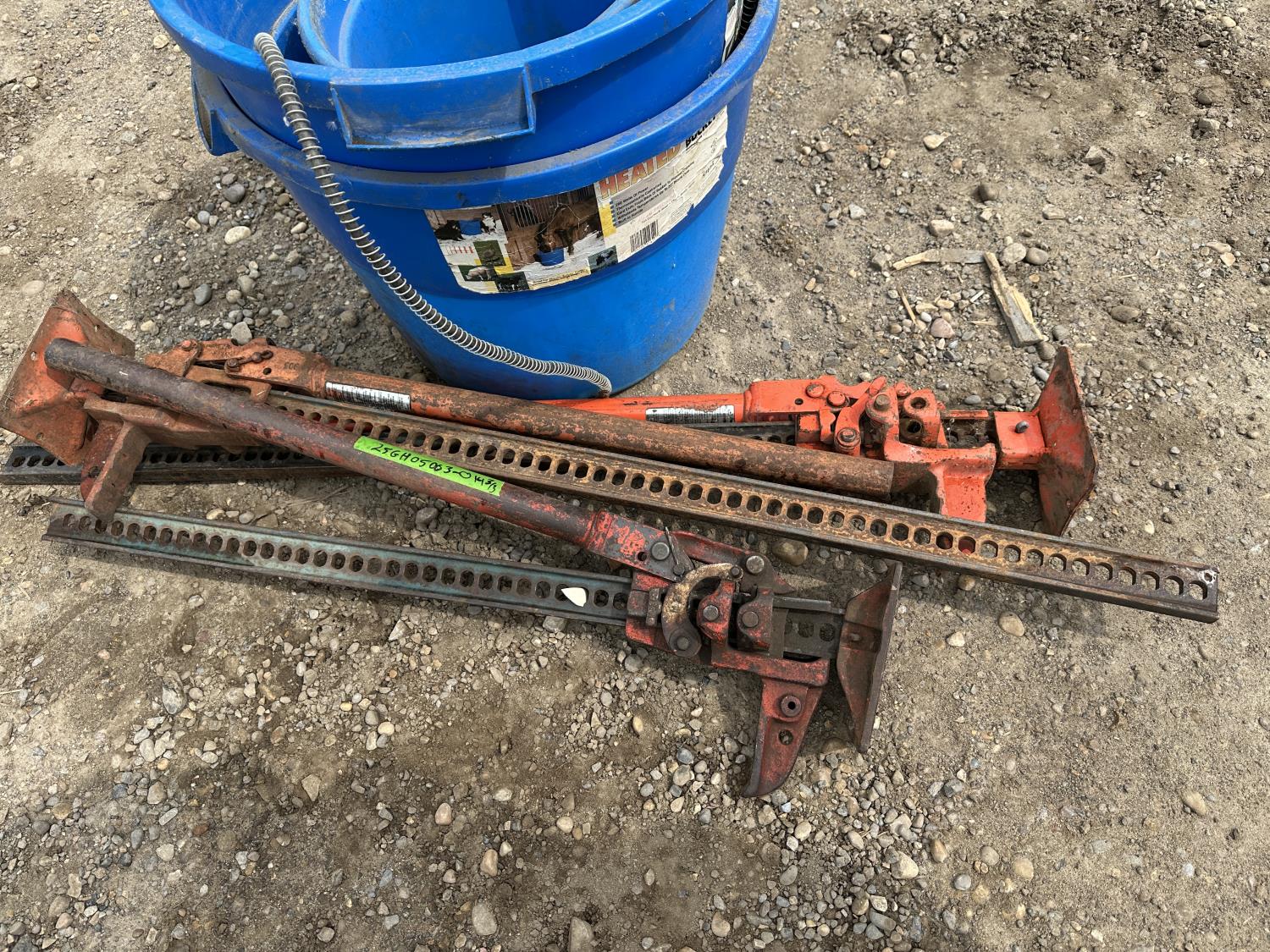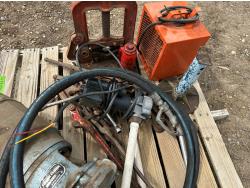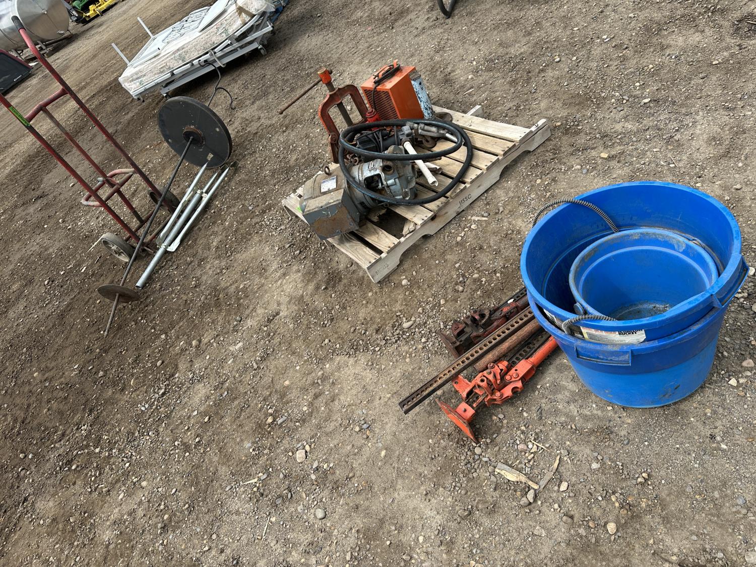 Dolly, tripod, plant hanger, Berkeley BBQ, single phase motor, pipe vise, (3) jack-alls, heated water buckets