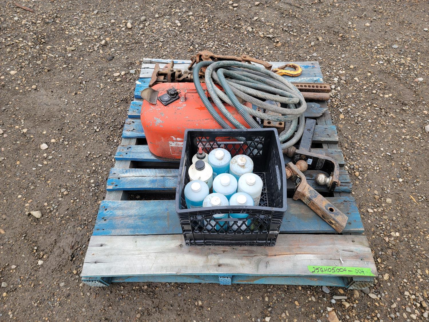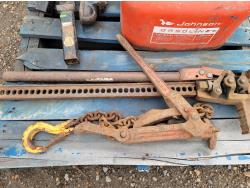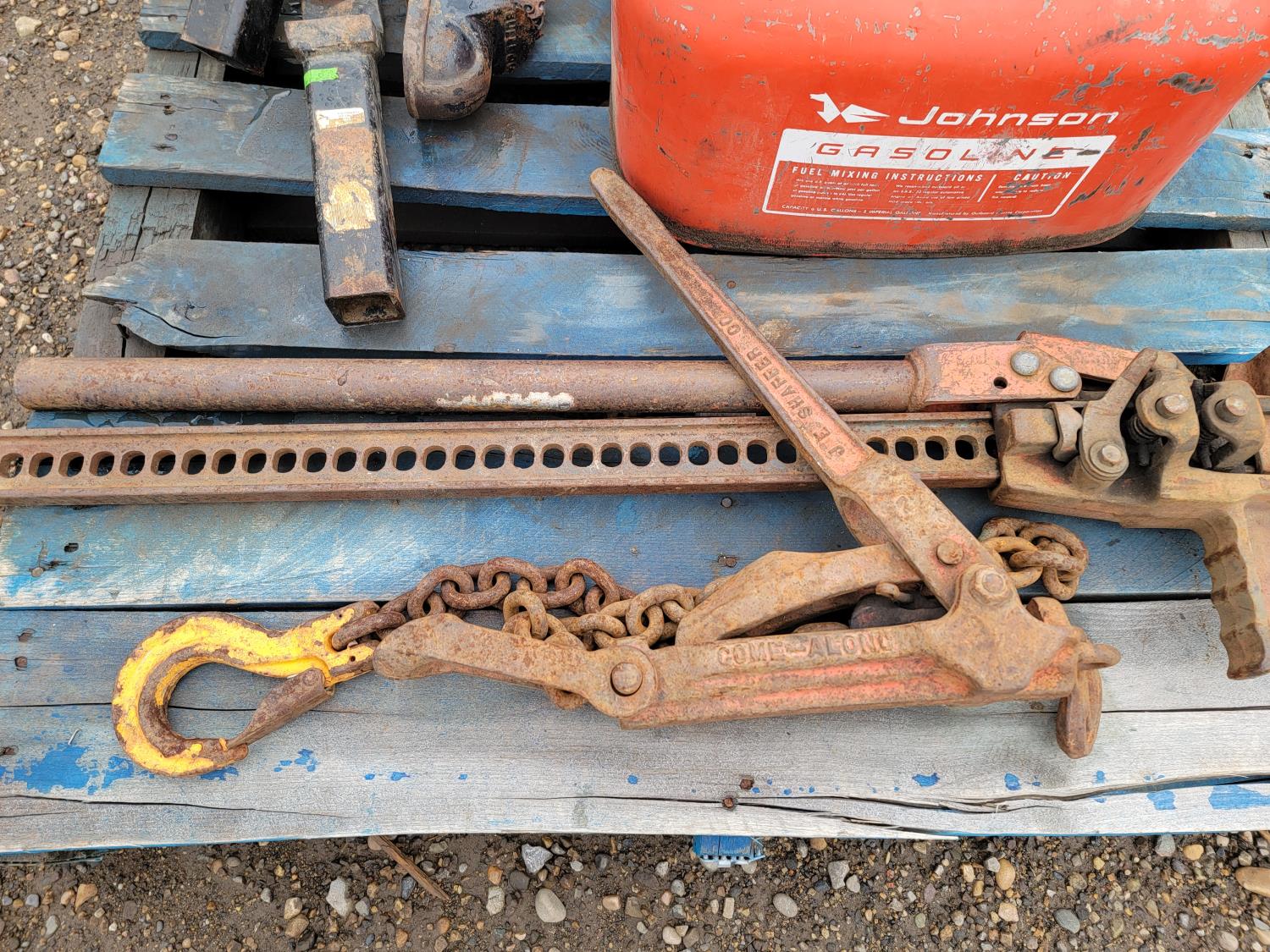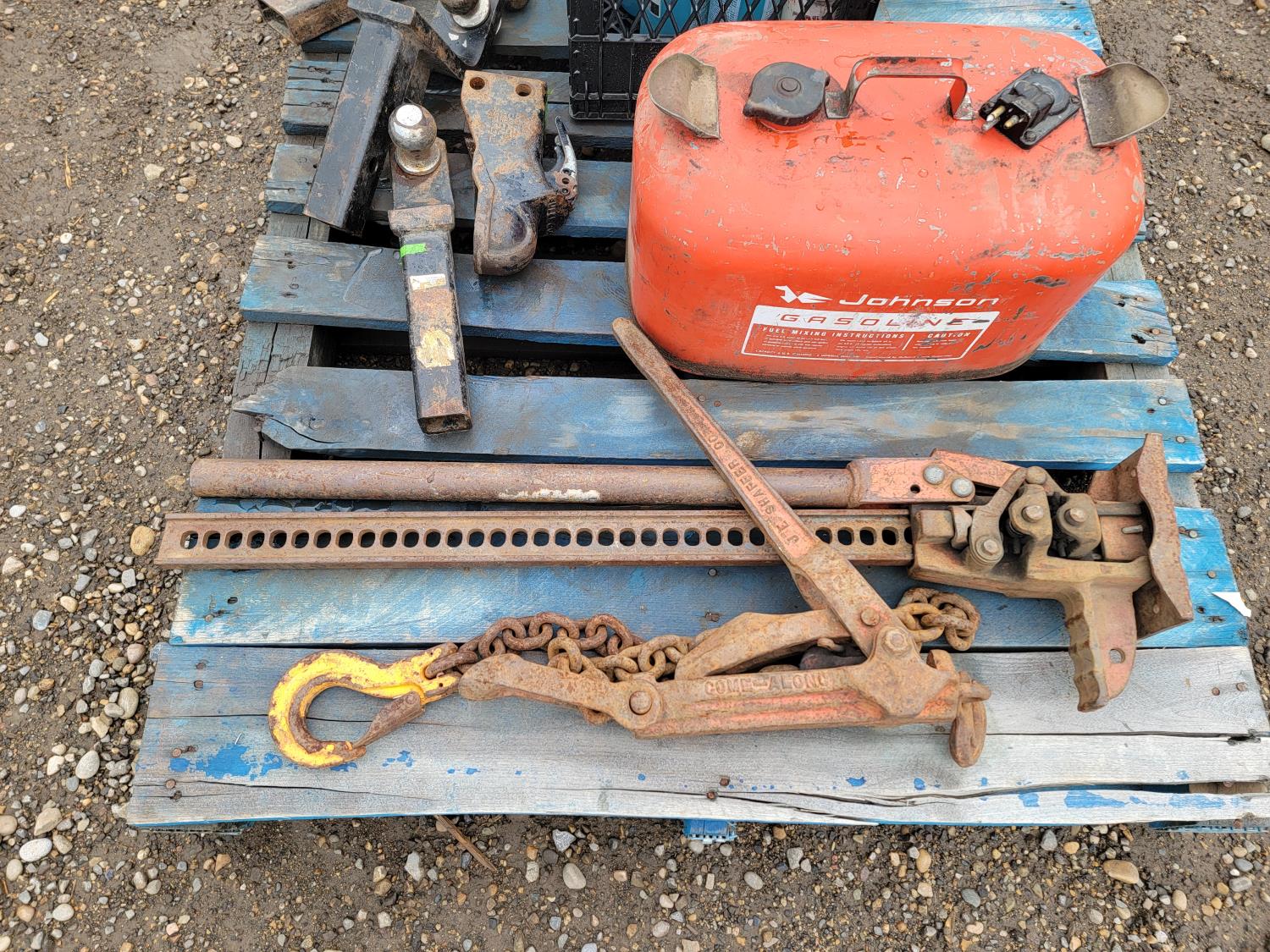 Hitches, boat gas can, jack-all, come-along, shop fluids