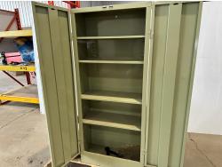 Metal storage cabinet 26 inch w x 12 inch d x 60 inch h, cream separator pieces, fireplace doors