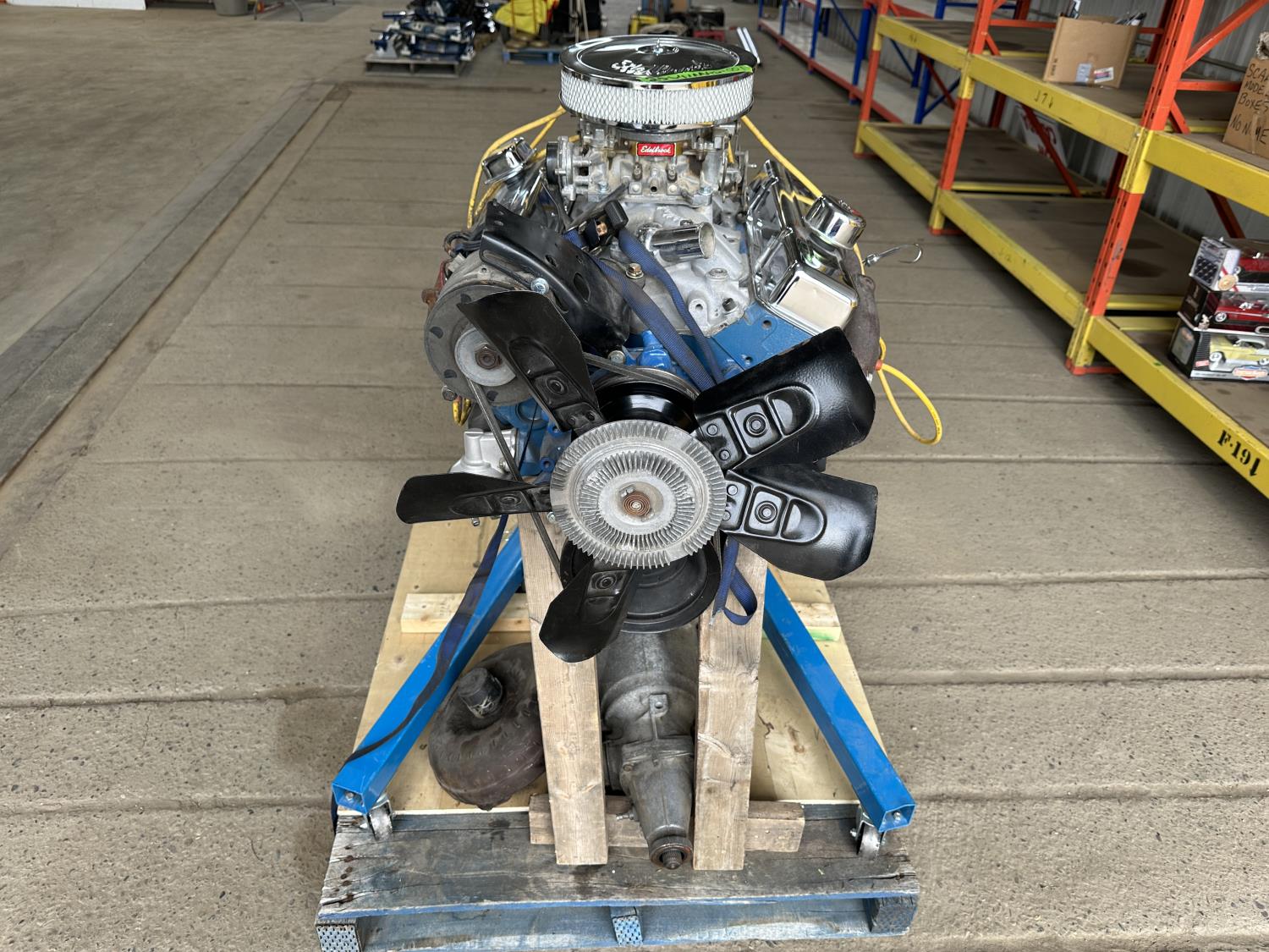 1272 Rebuilt 305 Chevrolet Engine with Engine Stand, 350 Transmission