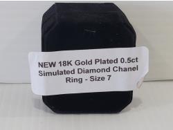 1545 Smartlife 18K Gold Plated 0.5 Ct Simulated Diamond Chanel Ring - Size 7 (Unused)