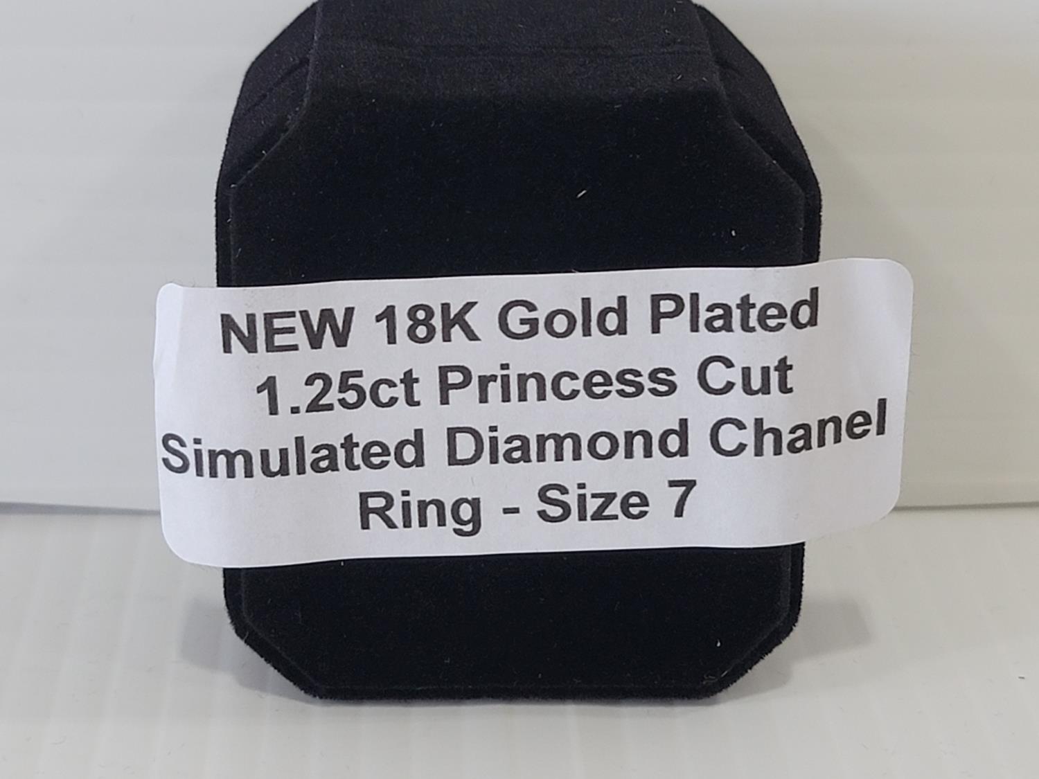1546 Smartlife 18K Gold Plated 1.25 Ct Princess Cut Simulated Diamond Chanel Ring - Size 7 (Unused)
