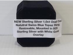 1547 Smartlife Sterling Silver 1.0 Ct Oval Cut Natural Swiss Blue Topaz Ring (Unused)