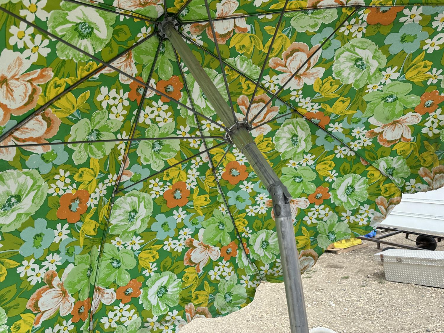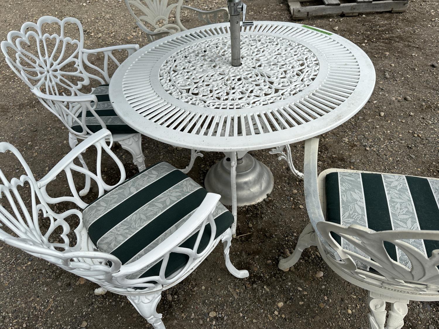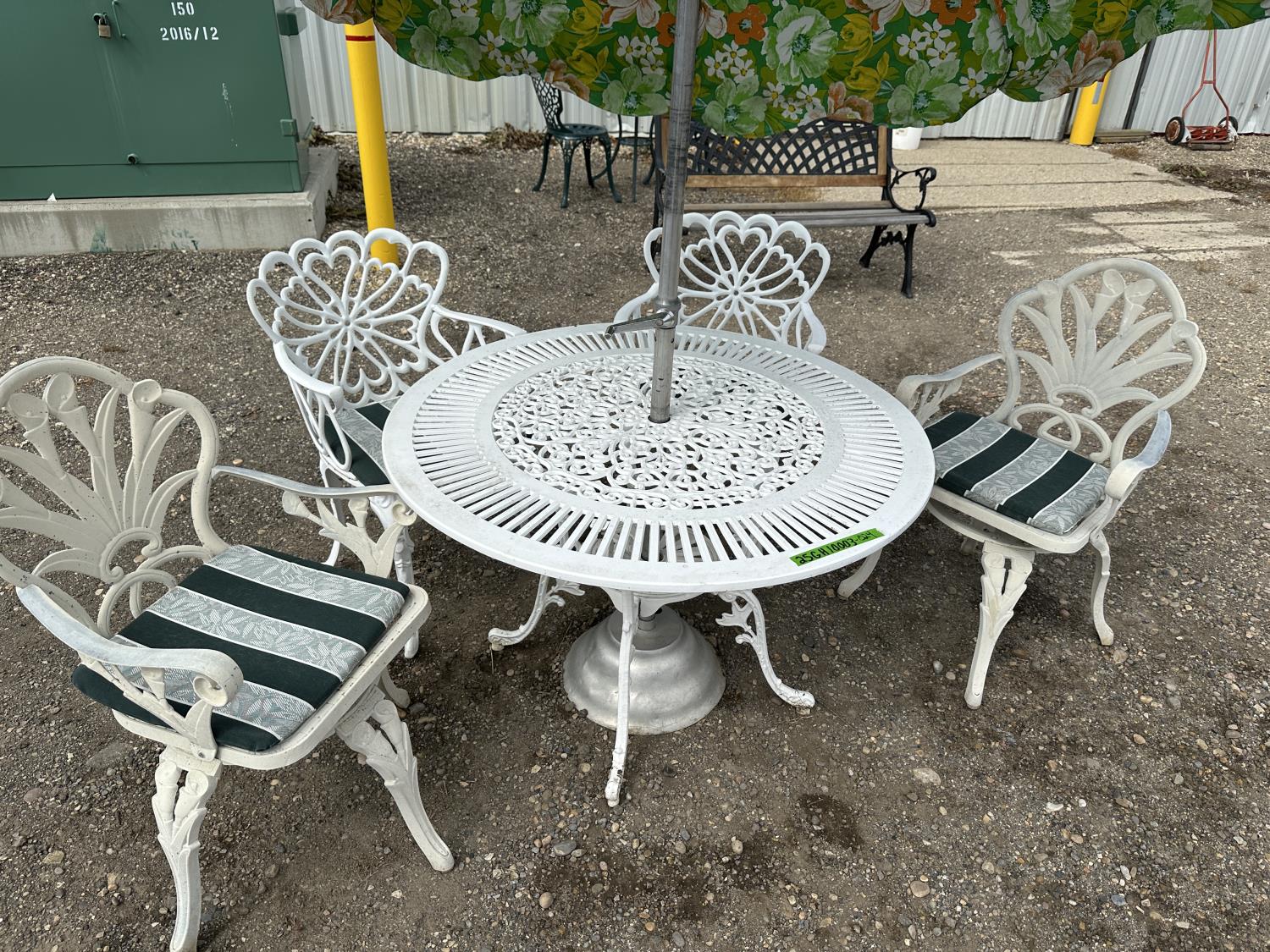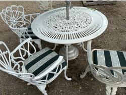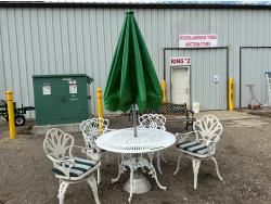 1578 Vintage Patio Set with Tilting Umbrella and (4) Chairs