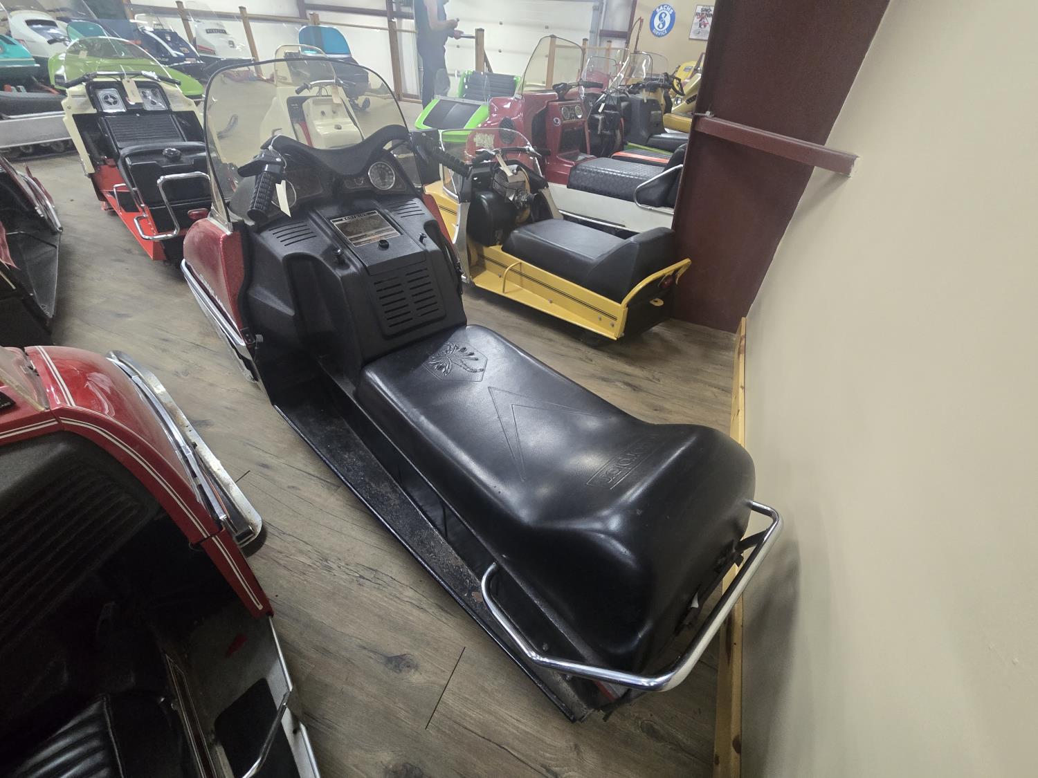 Rockwell 434 cc twin cylinder fan cooled 2 stroke engine, windshield, bogie suspension. This snowmobile has been in a 20 degree climate controlled showroom. Machine was in good running condition when placed in showroom. ***USA and Eastern Canada buyers shipping can be available. Call Lorne for further discussion. This sale is in Canadian dollars