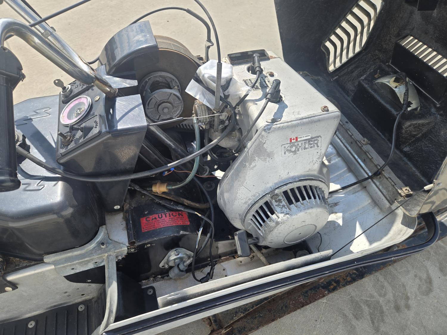 Kohler 399 cc 2 Stroke twin cylinder engine, slide rail suspension, windshield missing, runs on spray. ***USA and Eastern Canada buyers shipping can be available. Call Lorne for further discussion. This sale is in Canadian dollars