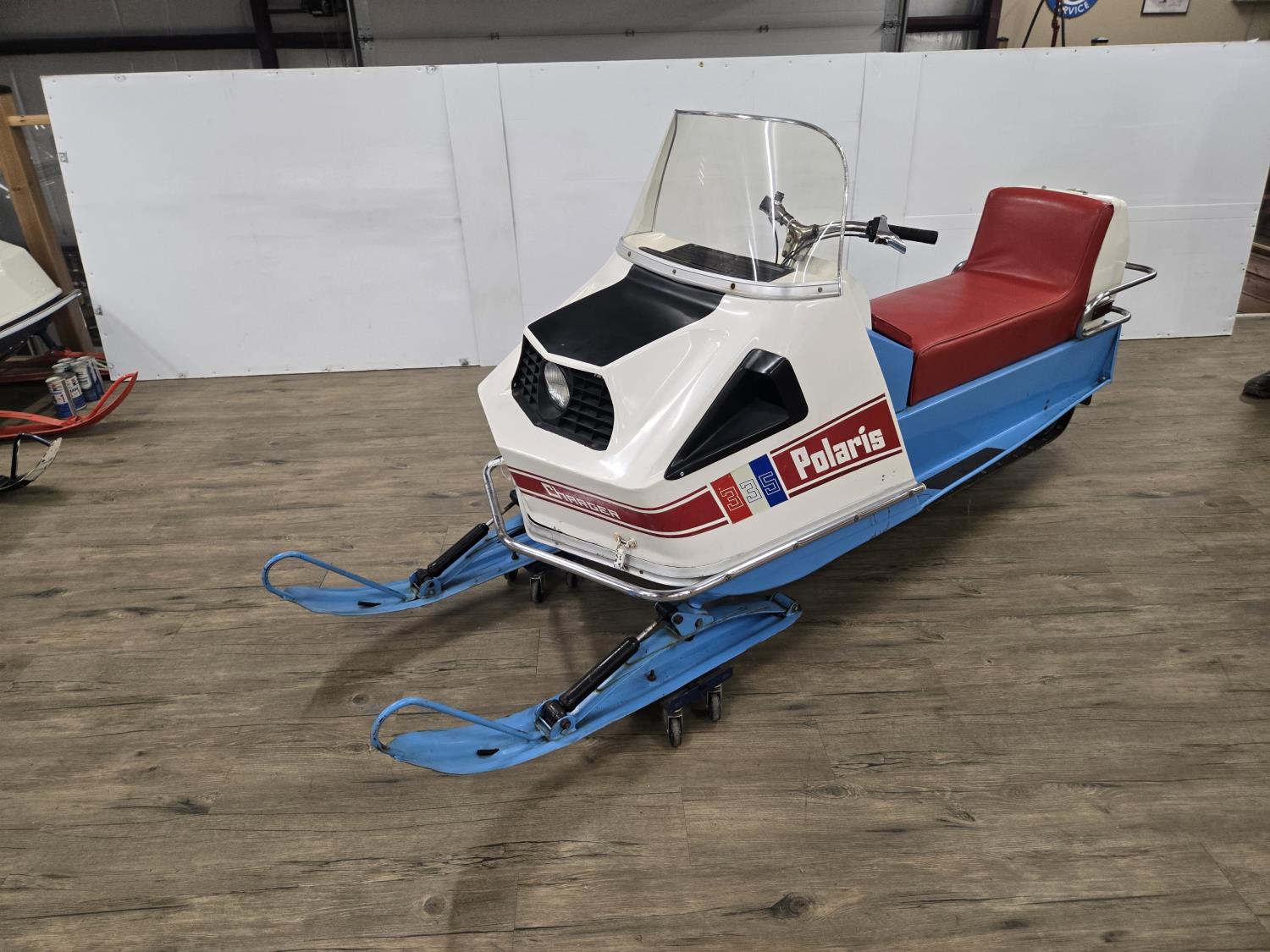 335 cc Polaris 2 cylinder 2 stroke fan cooled engine, windshield, rear tow hitch, slide suspension. This snowmobile has been in a 20 degree climate controlled showroom. Machine was in good running condition when placed in showroom. ***USA and Eastern Canada buyers shipping can be available. Call Lorne for further discussion. This sale is in Canadian dollars
