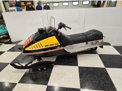 436 cc Rotax 2 cylinder 2 stroke fan cooled engine, windshield, slide rail suspension. This snowmobile has been in a 20 degree climate controlled showroom. Machine was in good running condition when placed in showroom. ***USA and Eastern Canada buyers shipping can be available. Call Lorne for further discussion. This sale is in Canadian dollars