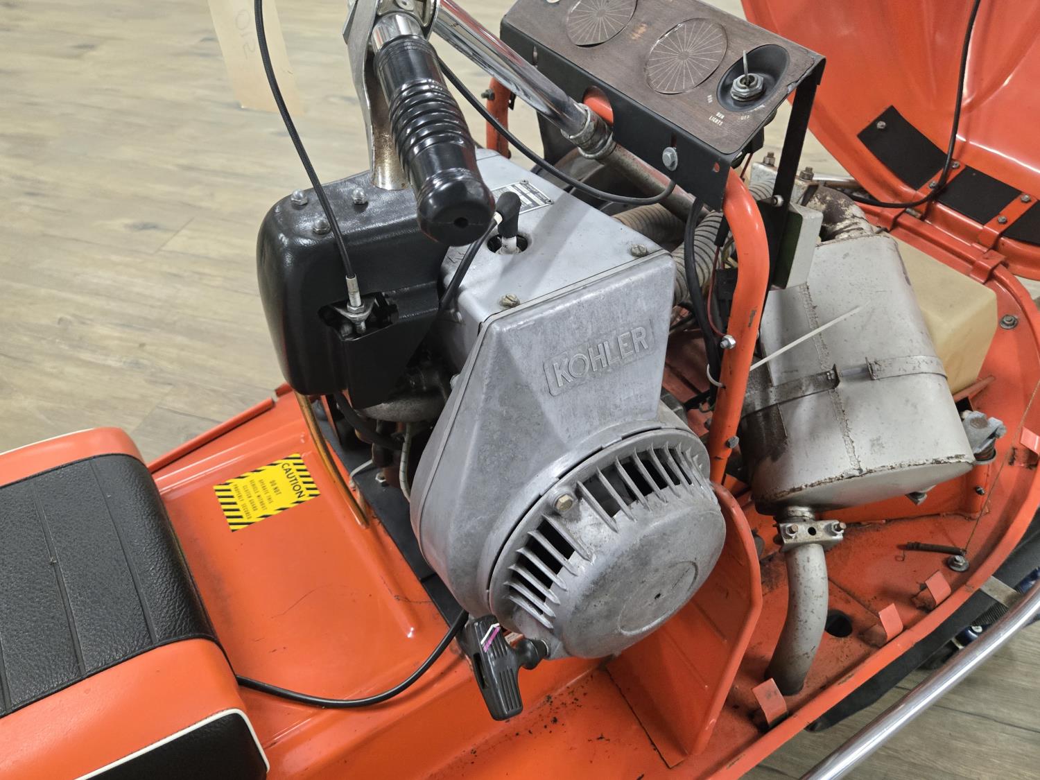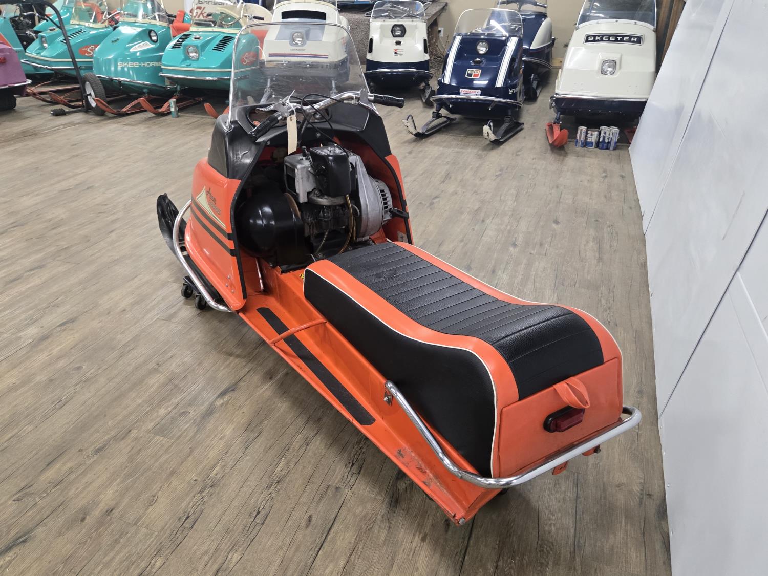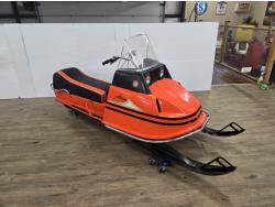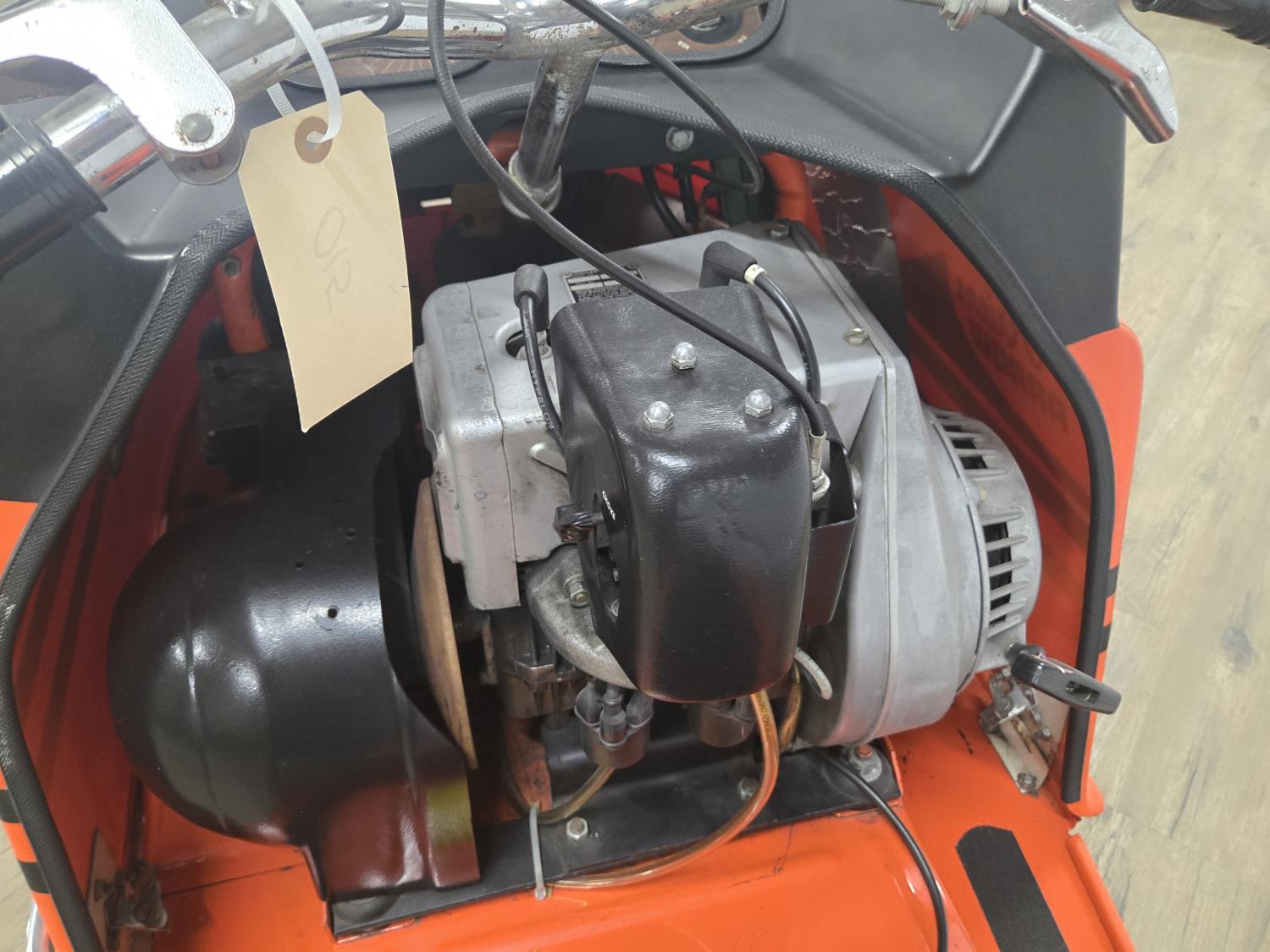 338 cc Kohler 2 cylinder 2 stroke fan cooled engine, windshield, under seat storage, bogie suspension. This snowmobile has been in a 20 degree climate controlled showroom. Machine was in good running condition when placed in showroom. ***USA and Eastern Canada buyers shipping can be available. Call Lorne for further discussion. This sale is in Canadian dollars