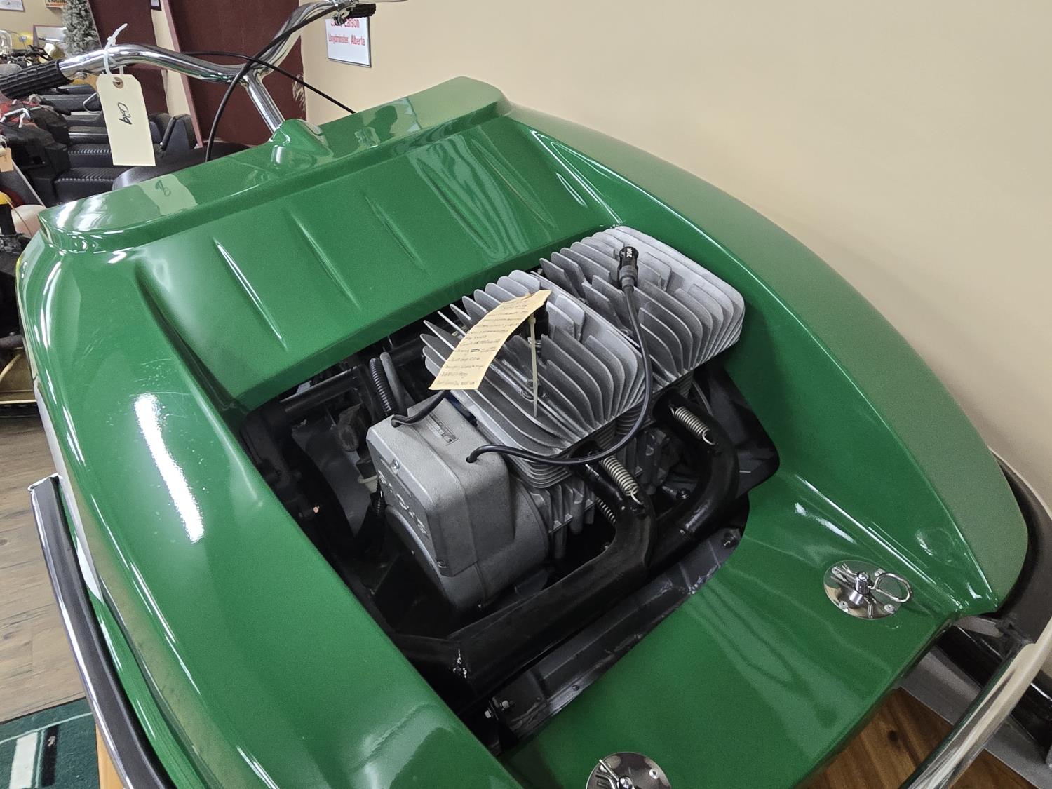 440 cc Sachs Free Air 2 cylinder 2 stroke engine, racing machine, slide rail suspension. This snowmobile has been in a 20 degree climate controlled showroom. Machine was in good running condition when placed in showroom. ***USA and Eastern Canada buyers shipping can be available. Call Lorne for further discussion. This sale is in Canadian dollars