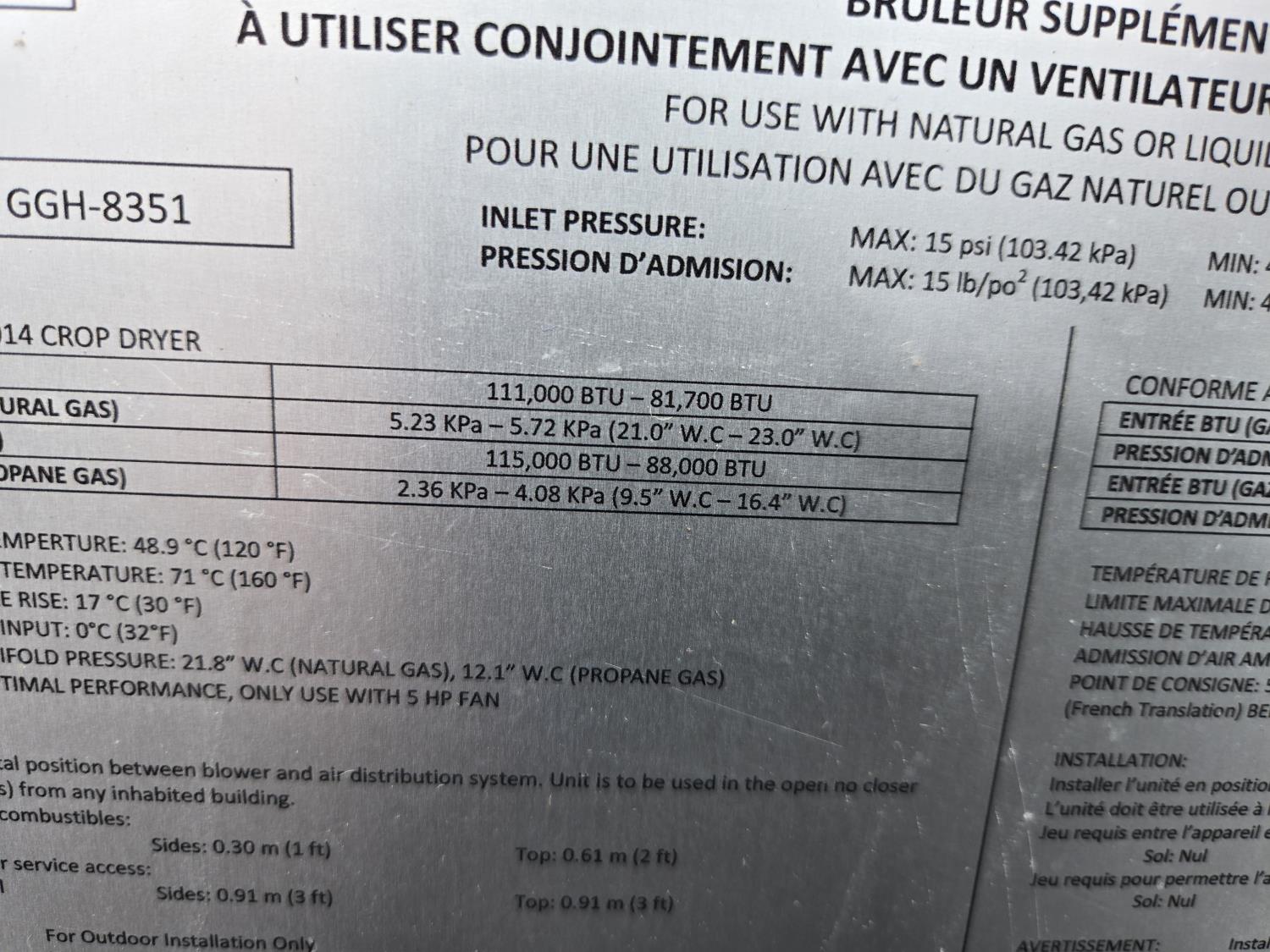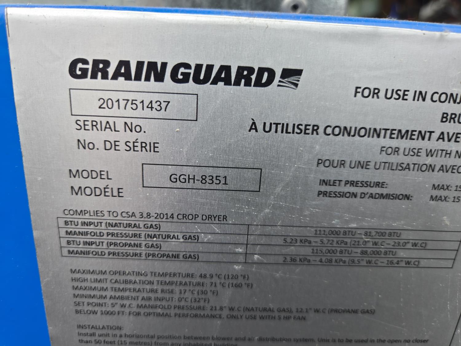 234A Grain Guard GGH8351 111,000 BTU Natural Gas Grain Bin Heater