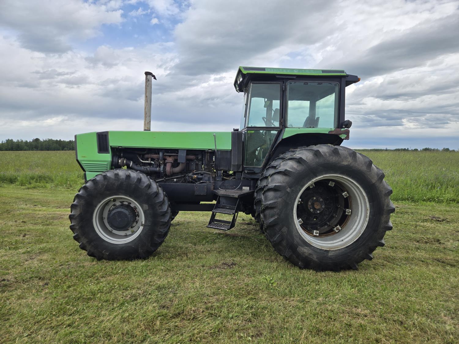 Duetz 9.6 L 6 cylinder air cooled engine, 193 PTO HP, 18 speed partial power shift transmission, cab, A/C, radio, Big 1000 PTO, 3 rear hydraulic outlets, rear wheel weights, 18.4-26 front tires, 20.8-38 rear tires, clamp-on duals