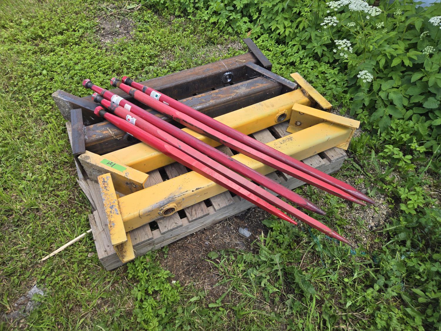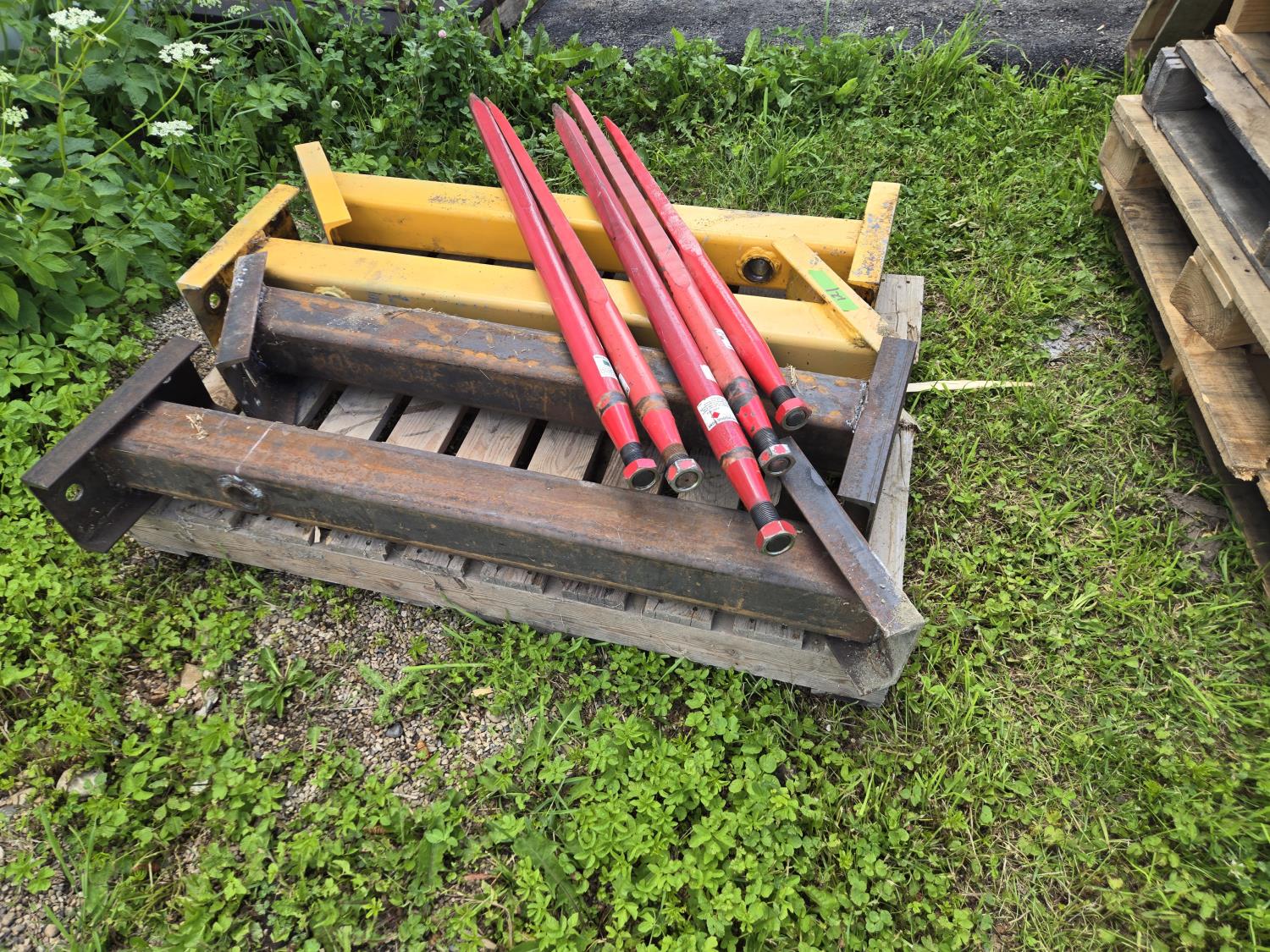 comes with 5 new bale spears, fits the bucket on Cat 924 loader in this sale