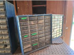 81 Plywood Shelf Unit, (3) Small Parts Organizers with Contents
