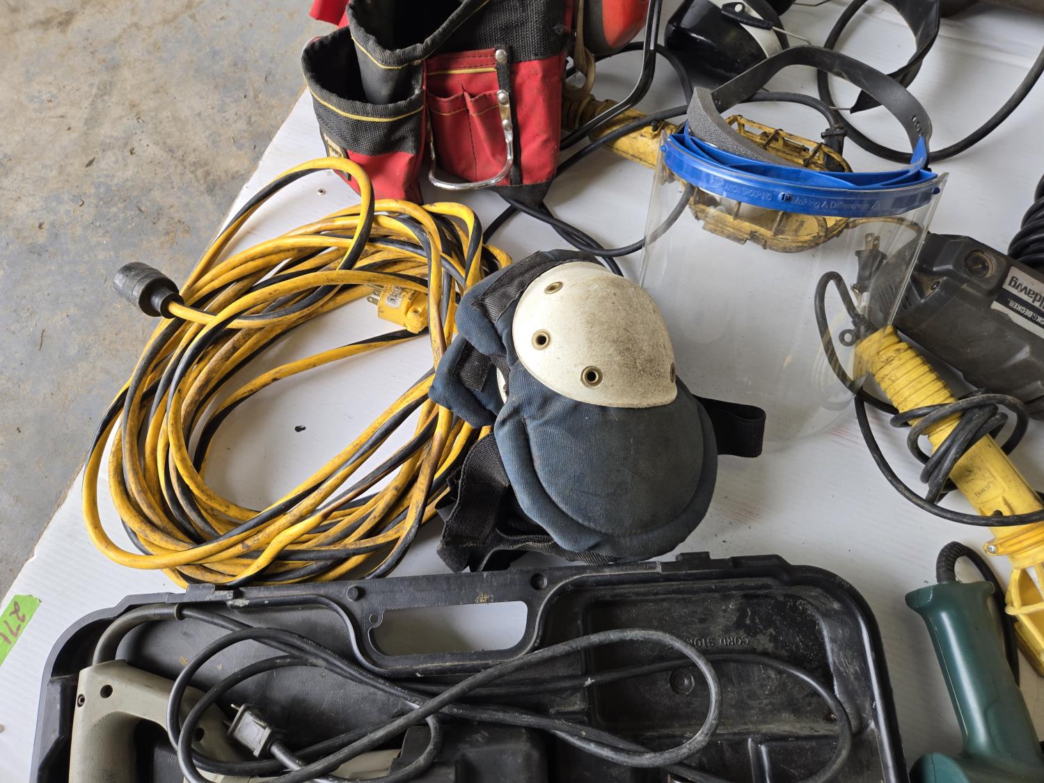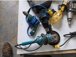 (2) drills, sawzall, heat gun, angle grinder, extension cord, tool bag, impact