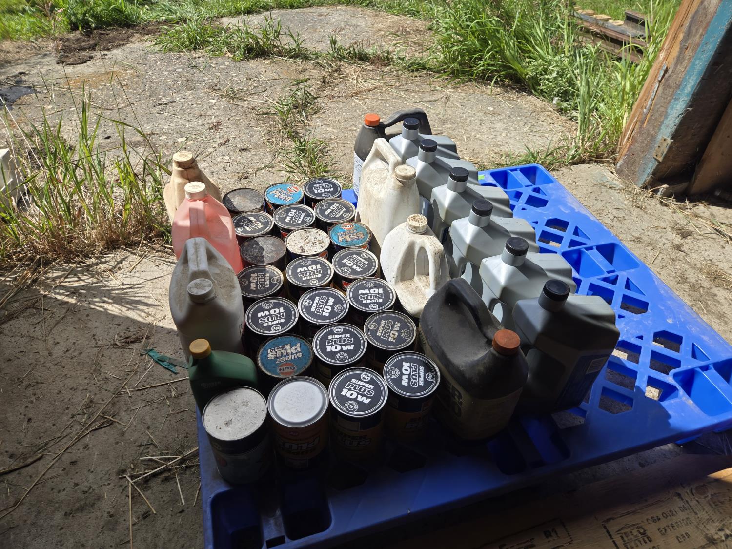 (6) Delco 400 3.79 L 5W-40 Synthetic oil, (1) 85W140 gear oil, (17) Petro Canada 10W engine oil, all unopened, miscellaneous shop fluids
