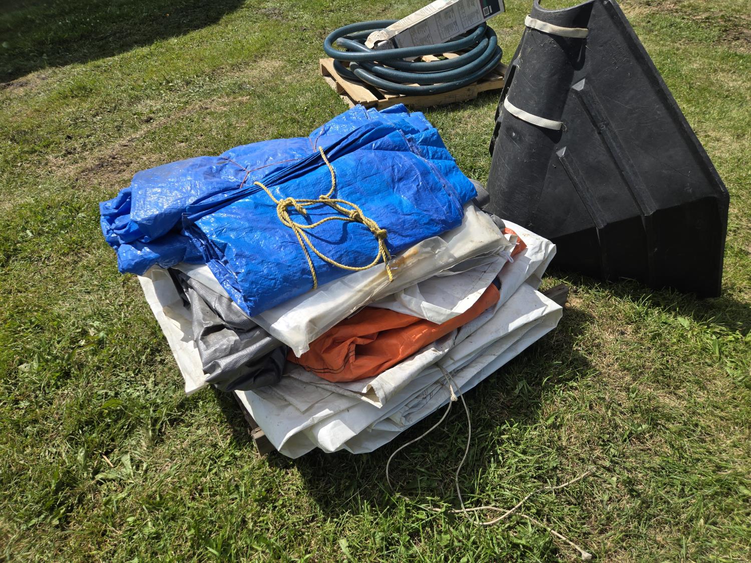 83 Qty of Tarps, Poly & Poly Auger Hopper