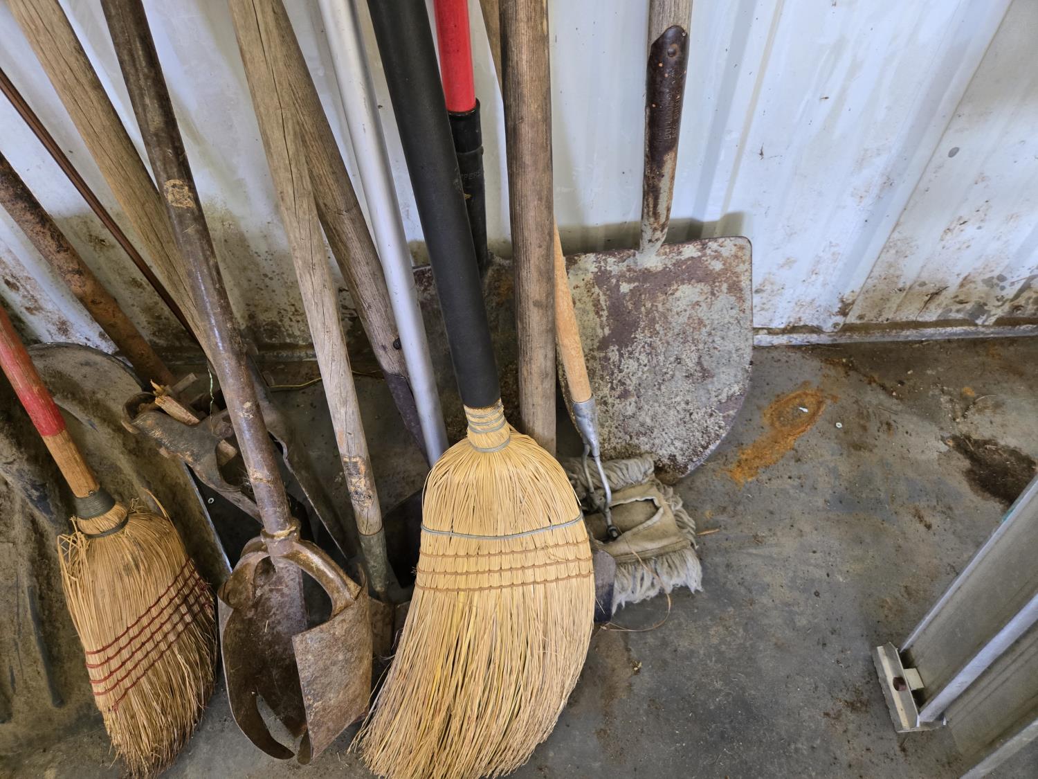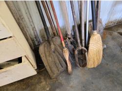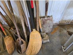 post hole augers, spades, shovel, brooms, scraper, miscellaneous