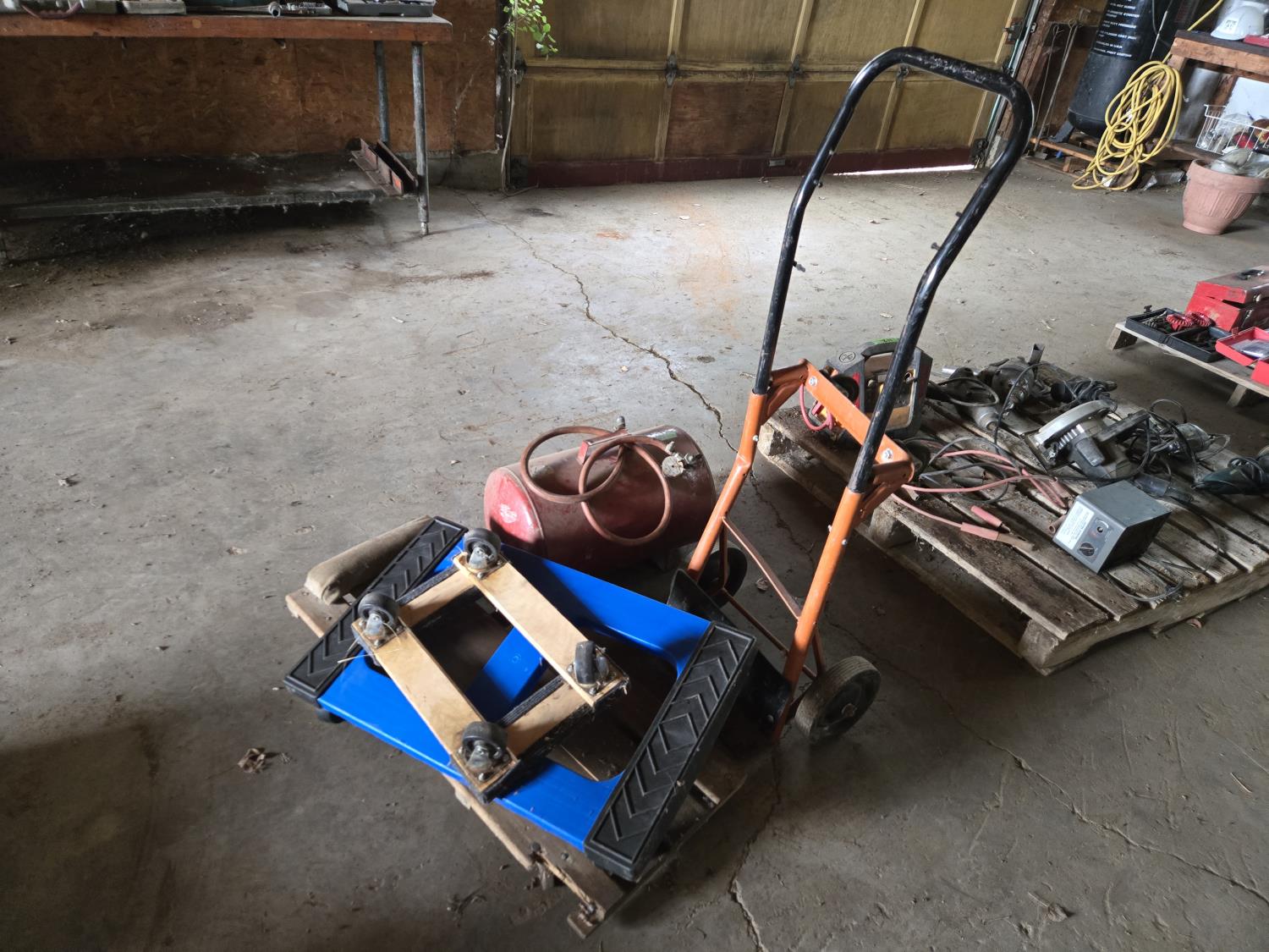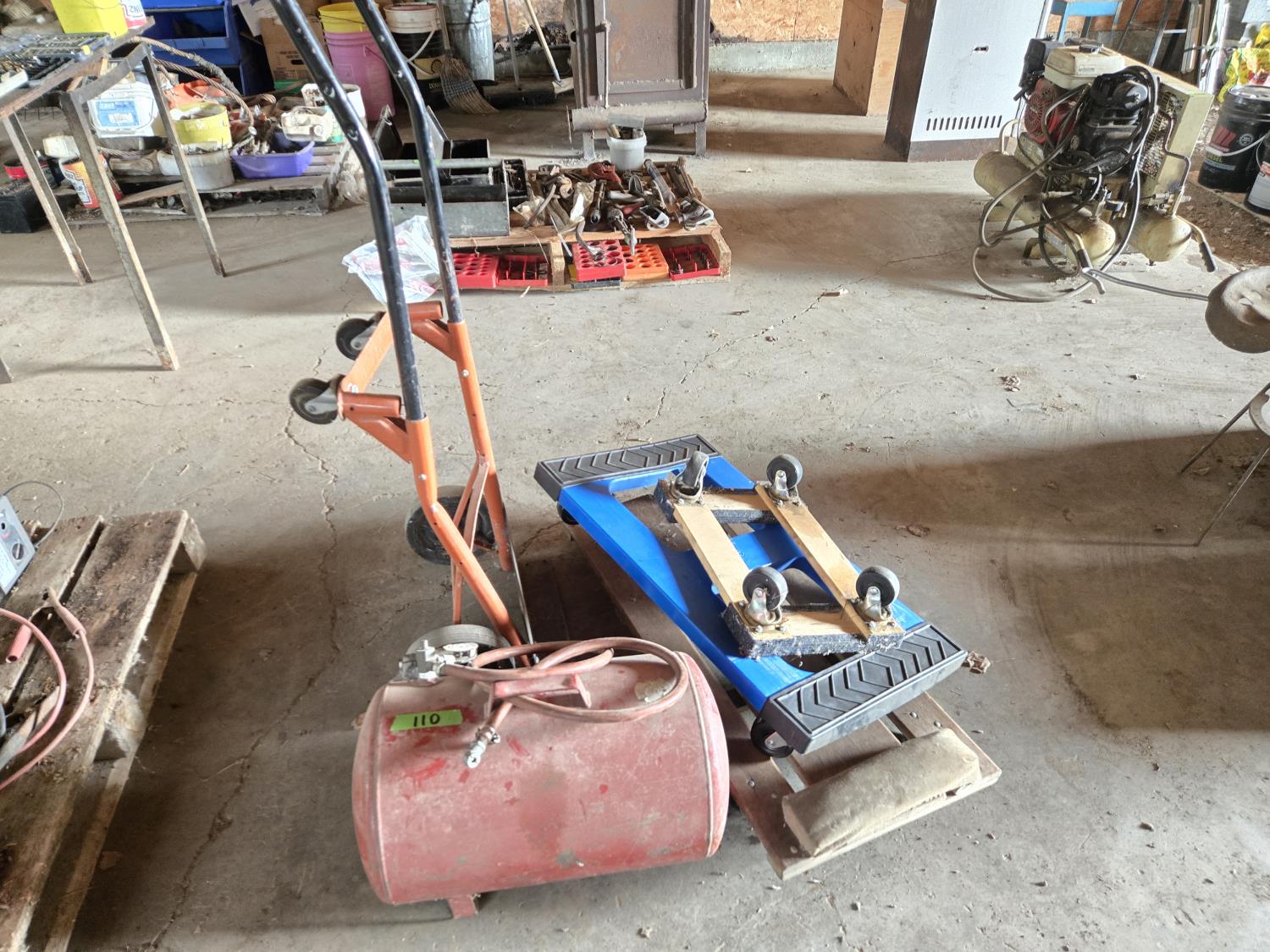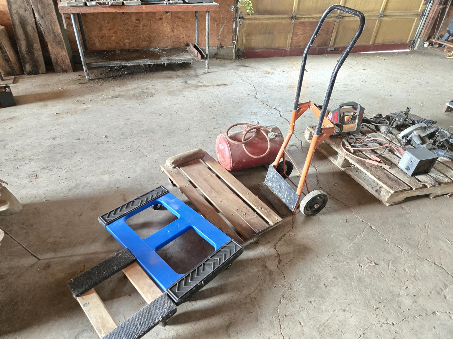 61 (2) Moving Dollies, (1) Shop Dolly, Creeper & Air Tank