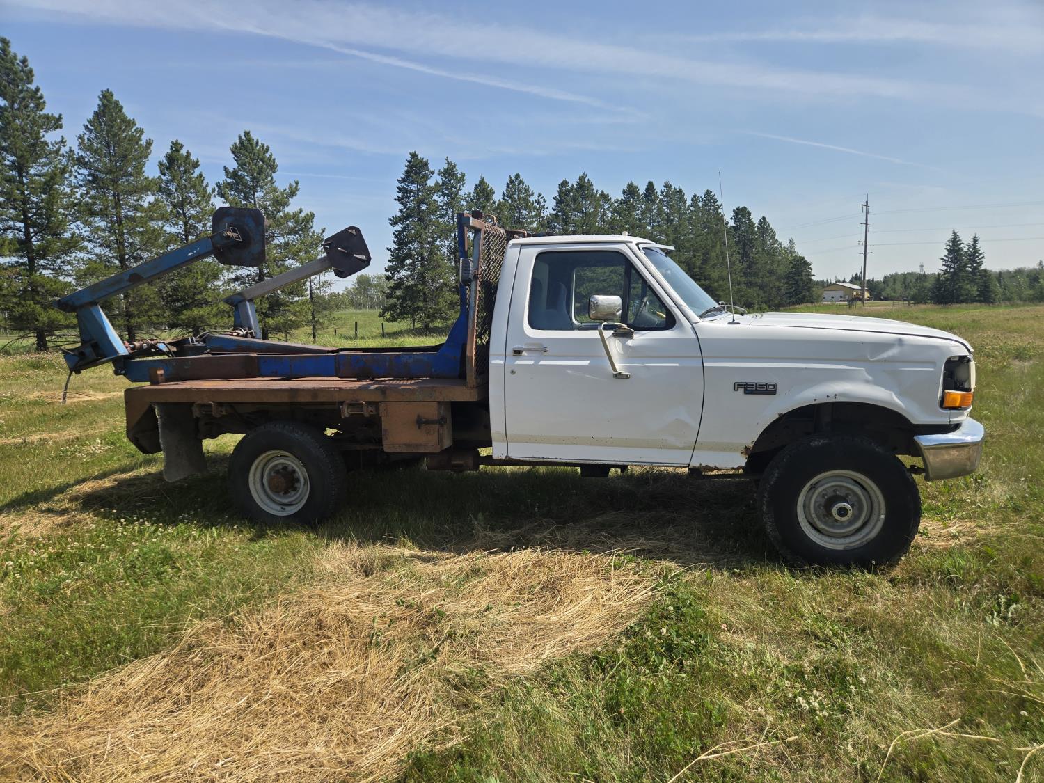 7.5 L, V8, gas, A/C, 96 inch long deck, bale deck, 235/85R16 tires