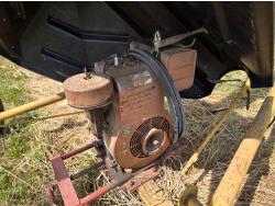 Briggs & Stratton 9 HP gas engine, extended spout, poly auger hopper, hand winch lift, 235/75R15 tires
