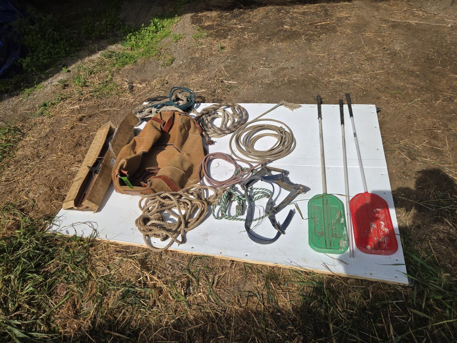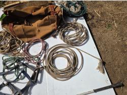 205 Ropes, Halters, (2) Stock Paddles, Decorative Pot Hanger, Leather Bag