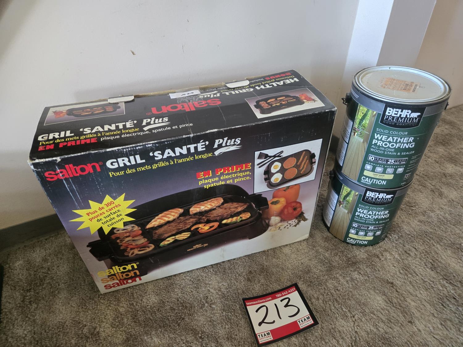 213 Slaton Electric Grill & (2) Cans of Wood Stain & Sealer